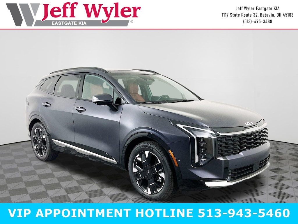Panthera Metal Matte 2026 Kia Sportage SX-Prestige I4 FWD 8-Speed Automatic 25/33 City/Highway MPG Jeff Wyler Eastgate Auto Mall is honored to offer this gorgeous-looking 2026 Kia Sportage SX-Prestige in Panthera Metal Matte. Well equipped with: Carmine Red Interior Color Package, 4-Wheel Disc Brakes, 8 Speakers, ABS brakes, Air Conditioning, Alloy wheels, AM/FM radio: SiriusXM, Auto High-beam Headlights, Automatic temperature control, Brake assist, Bumpers: body-color, Carpeted Floor Mats, Compass, Delay-off headlights, Driver door bin, Driver vanity mirror, Dual front impact airbags, Dual front side impact airbags, Electronic Stability Control, Emergency communication system: Kia Connect (includes 1 year free trial), Four wheel independent suspension, Front anti-roll bar, Front Bucket Seats, Front Center Armrest, Front dual zone A/C, Front fog lights, Front reading lights, Fully automatic headlights, harman/kardon® Speakers, Heated and Ventilated Front Bucket Seats, Heated door mirrors, Heated front seats, Heated steering wheel, Illuminated entry, Leather Shift Knob, Leather steering wheel, Low tire pressure warning, Memory seat, Navigation System, Occupant sensing airbag, Outside temperature display, Overhead airbag, Overhead console, Panic alarm, Passenger door bin, Passenger vanity mirror, Power door mirrors, Power driver seat, Power Liftgate, Power moonroof, Power passenger seat, Power steering, Power windows, Radio: AM/FM/HD Premium Audio System, Rain sensing wipers, Rear anti-roll bar, Rear reading lights, Rear seat center armrest, Rear side impact airbag, Rear window defroster, Rear window wiper, Remote keyless entry, Security system, Speed control, Speed-sensing steering, Split folding rear seat, Spoiler, Steering wheel mounted audio controls, Syntex Premium Leatherette Seat Trim, Tachometer, Telescoping steering wheel, Tilt steering wheel, Traction control, Trip computer, Turn signal indicator mirrors, Variably intermittent wipers, Ventilated front seats, and Wheels: 19" x 7.5J Alloy. 25/33 City/Highway MPG