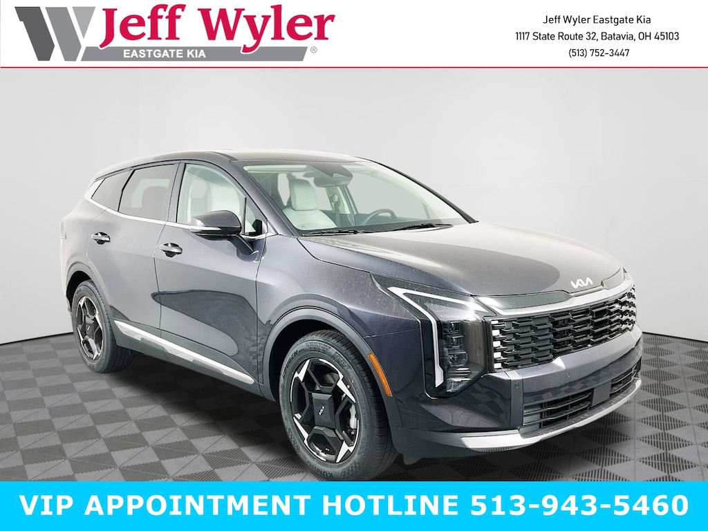 Panthera Metal Gray 2026 Kia Sportage EX I4 FWD 8-Speed Automatic 25/33 City/Highway MPG Jeff Wyler Eastgate Auto Mall is honored to offer this good-looking 2026 Kia Sportage EX in Panthera Metal Gray. Well equipped with: 18" x 7.5J Alloy Wheels, 4-Wheel Disc Brakes, 6 Speakers, ABS brakes, Air Conditioning, All Weather Mats, Alloy wheels, Auto High-beam Headlights, Automatic temperature control, Brake assist, Bumpers: body-color, Delay-off headlights, Driver door bin, Driver vanity mirror, Dual front impact airbags, Dual front side impact airbags, Electronic Stability Control, Emergency communication system: Kia Connect (includes 1 year free trial), Four wheel independent suspension, Front anti-roll bar, Front Bucket Seats, Front Center Armrest, Front dual zone A/C, Fully automatic headlights, Heated door mirrors, Heated Front Bucket Seats, Heated front seats, Illuminated entry, Leather Shift Knob, Leather steering wheel, Low tire pressure warning, Occupant sensing airbag, Outside temperature display, Overhead airbag, Overhead console, Panic alarm, Passenger door bin, Passenger vanity mirror, Power door mirrors, Power driver seat, Power Liftgate, Power steering, Power windows, Radio: AM/FM/HD Audio System, Rain sensing wipers, Rear anti-roll bar, Rear seat center armrest, Rear side impact airbag, Rear window defroster, Rear window wiper, Remote keyless entry, Security system, Speed control, Speed-sensing steering, Split folding rear seat, Spoiler, Steering wheel mounted audio controls, SynTex Leatherette Seat Trim, Tachometer, Telescoping steering wheel, Tilt steering wheel, Traction control, Trip computer, Turn signal indicator mirrors, and Variably intermittent wipers. 25/33 City/Highway MPG