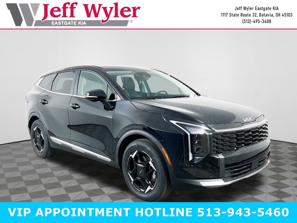 Ebony Black 2026 Kia Sportage EX I4 FWD 8-Speed Automatic 25/33 City/Highway MPG Jeff Wyler Eastgate Auto Mall is excited to offer this attractive-looking 2026 Kia Sportage EX in Ebony Black. Well equipped with: 18" x 7.5J Alloy Wheels, 4-Wheel Disc Brakes, 6 Speakers, ABS brakes, Air Conditioning, All Weather Mats, Alloy wheels, Auto Dimming Mirror with HomeLink, Auto High-beam Headlights, Automatic temperature control, Brake assist, Bumpers: body-color, Delay-off headlights, Driver door bin, Driver vanity mirror, Dual front impact airbags, Dual front side impact airbags, Electronic Stability Control, Emergency communication system: Kia Connect (includes 1 year free trial), Four wheel independent suspension, Front anti-roll bar, Front Bucket Seats, Front Center Armrest, Front dual zone A/C, Fully automatic headlights, Heated door mirrors, Heated Front Bucket Seats, Heated front seats, Illuminated entry, Leather Shift Knob, Leather steering wheel, Low tire pressure warning, Occupant sensing airbag, Outside temperature display, Overhead airbag, Overhead console, Panic alarm, Passenger door bin, Passenger vanity mirror, Power door mirrors, Power driver seat, Power Liftgate, Power steering, Power windows, Radio: AM/FM/HD Audio System, Rain sensing wipers, Rear anti-roll bar, Rear seat center armrest, Rear side impact airbag, Rear window defroster, Rear window wiper, Remote keyless entry, Security system, Speed control, Speed-sensing steering, Split folding rear seat, Spoiler, Steering wheel mounted audio controls, Syntex Leatherette Seat Trim, Tachometer, Telescoping steering wheel, Tilt steering wheel, Traction control, Trip computer, Turn signal indicator mirrors, and Variably intermittent wipers. 25/33 City/Highway MPG