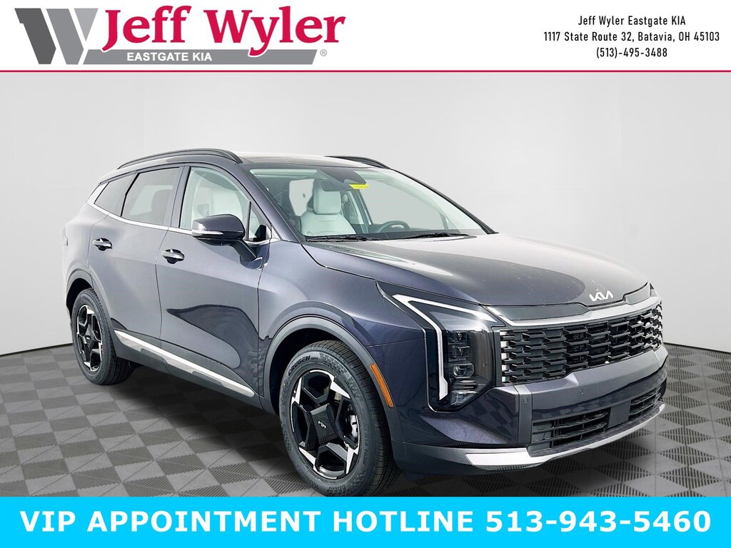 Panthera Metal Gray 2026 Kia Sportage EX I4 FWD 8-Speed Automatic 25/33 City/Highway MPG Jeff Wyler Eastgate Auto Mall is pumped up to offer this great-looking 2026 Kia Sportage EX in Panthera Metal Gray. Well equipped with: EX Panorama Roof Package (LED Interior Lighting, Panoramic Sunroof, and Roof Rails), 18" x 7.5J Alloy Wheels, 4-Wheel Disc Brakes, 6 Speakers, ABS brakes, Air Conditioning, All Weather Mats, Alloy wheels, Auto Dimming Mirror with HomeLink, Auto High-beam Headlights, Automatic temperature control, Brake assist, Bumpers: body-color, Delay-off headlights, Driver door bin, Driver vanity mirror, Dual front impact airbags, Dual front side impact airbags, Electronic Stability Control, Emergency communication system: Kia Connect (includes 1 year free trial), Four wheel independent suspension, Front anti-roll bar, Front Bucket Seats, Front Center Armrest, Front dual zone A/C, Fully automatic headlights, Heated door mirrors, Heated Front Bucket Seats, Heated front seats, Illuminated entry, Leather Shift Knob, Leather steering wheel, Low tire pressure warning, Occupant sensing airbag, Outside temperature display, Overhead airbag, Overhead console, Panic alarm, Passenger door bin, Passenger vanity mirror, Power door mirrors, Power driver seat, Power Liftgate, Power steering, Power windows, Radio: AM/FM/HD Audio System, Rain sensing wipers, Rear anti-roll bar, Rear seat center armrest, Rear side impact airbag, Rear window defroster, Rear window wiper, Remote keyless entry, Security system, Speed control, Speed-sensing steering, Split folding rear seat, Spoiler, Steering wheel mounted audio controls, Syntex Leatherette Seat Trim, Tachometer, Telescoping steering wheel, Tilt steering wheel, Traction control, Trip computer, Turn signal indicator mirrors, and Variably intermittent wipers. 25/33 City/Highway MPG