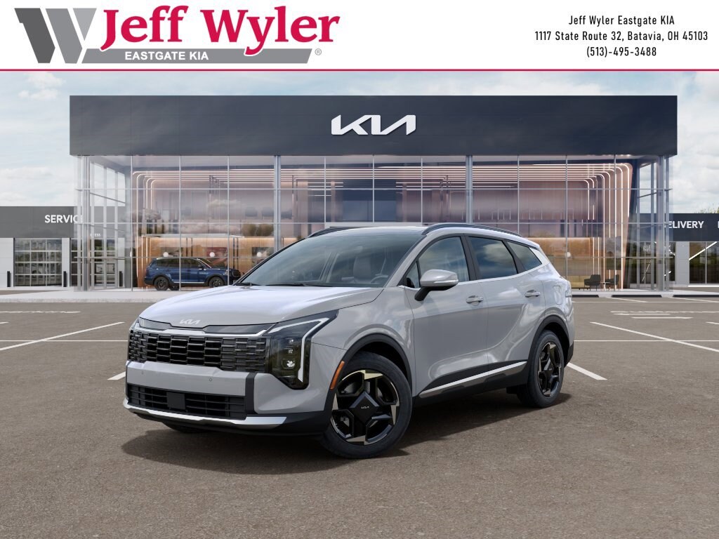Wolf Gray 2026 Kia Sportage EX I4 FWD 8-Speed Automatic 25/33 City/Highway MPG Jeff Wyler Eastgate Auto Mall is very proud to offer this handsome 2026 Kia Sportage EX in Wolf Gray. Well equipped with: EX Panorama Roof Package (LED Interior Lighting, Panoramic Sunroof, and Roof Rails), 18" x 7.5J Alloy Wheels, 4-Wheel Disc Brakes, 6 Speakers, ABS brakes, Air Conditioning, Alloy wheels, AM/FM radio, Auto High-beam Headlights, Automatic temperature control, Brake assist, Bumpers: body-color, Cargo Mat, Carpeted Floor Mats, Delay-off headlights, Driver door bin, Driver vanity mirror, Dual front impact airbags, Dual front side impact airbags, Electronic Stability Control, Emergency communication system: Kia Connect (includes 1 year free trial), Four wheel independent suspension, Front anti-roll bar, Front Bucket Seats, Front Center Armrest, Front dual zone A/C, Fully automatic headlights, Heated door mirrors, Heated Front Bucket Seats, Heated front seats, Illuminated entry, Leather Shift Knob, Leather steering wheel, Low tire pressure warning, Occupant sensing airbag, Outside temperature display, Overhead airbag, Overhead console, Panic alarm, Passenger door bin, Passenger vanity mirror, Power door mirrors, Power driver seat, Power Liftgate, Power steering, Power windows, Radio: AM/FM/HD Audio System, Rain sensing wipers, Rear anti-roll bar, Rear seat center armrest, Rear side impact airbag, Rear window defroster, Rear window wiper, Remote keyless entry, Security system, Speed control, Speed-sensing steering, Split folding rear seat, Spoiler, Steering wheel mounted audio controls, Syntex Leatherette Seat Trim, Tachometer, Telescoping steering wheel, Tilt steering wheel, Traction control, Trip computer, Turn signal indicator mirrors, and Variably intermittent wipers. 25/33 City/Highway MPG