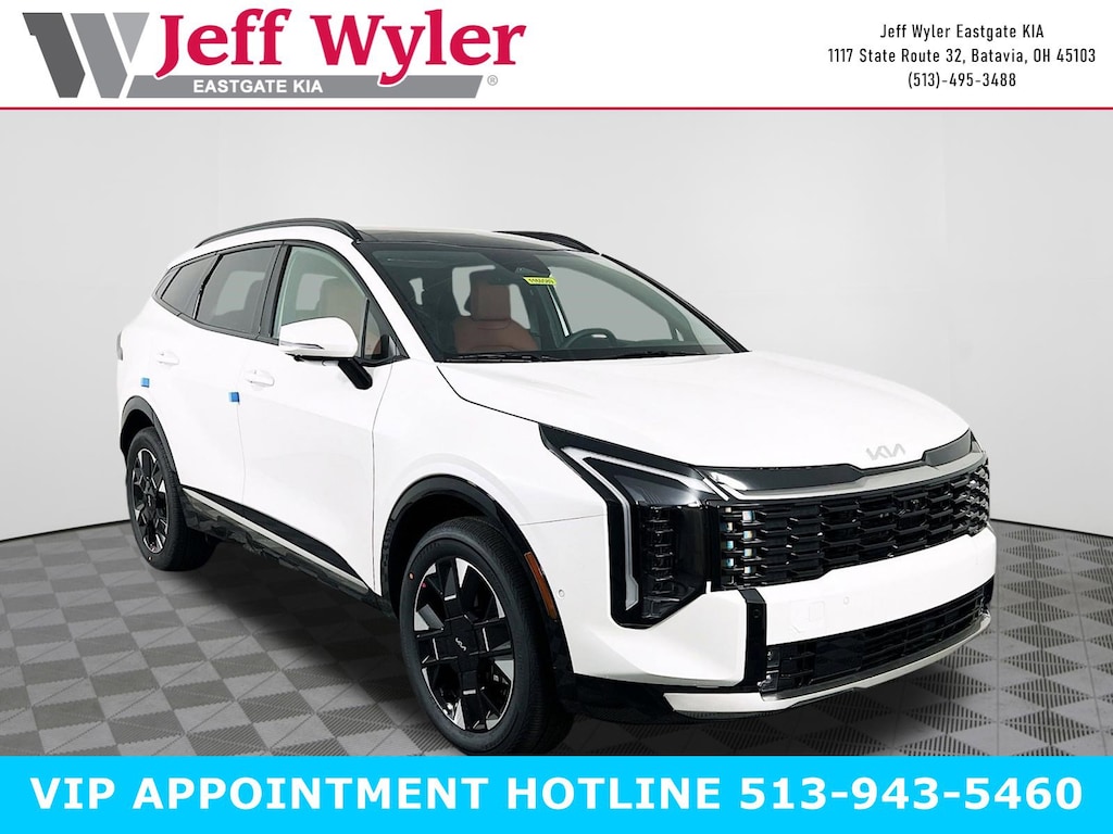 Snow White Pearl 2026 Kia Sportage Hybrid SX-Prestige 1.6L Turbo GDI 4-Cylinder AWD 6-Speed Automatic 35/36 City/Highway MPG Jeff Wyler Eastgate Auto Mall is proud to offer this stunning 2026 Kia Sportage Hybrid SX-Prestige in Snow White Pearl. Well equipped with: Carmine Red Interior Color Package, 4-Wheel Disc Brakes, 8 Speakers, ABS brakes, Air Conditioning, All Weather Floor Mats, Alloy wheels, AM/FM radio: SiriusXM, Auto High-beam Headlights, Auto-Dimming Mirror with HomeLink, Automatic temperature control, Brake assist, Bumpers: body-color, Compass, Delay-off headlights, Driver door bin, Driver vanity mirror, Dual front impact airbags, Dual front side impact airbags, Electronic Stability Control, Emergency communication system, Four wheel independent suspension, Front anti-roll bar, Front Bucket Seats, Front Center Armrest, Front dual zone A/C, Front fog lights, Front reading lights, Fully automatic headlights, harman/kardon® Speakers, Heated and Ventilated Front Bucket Seats, Heated door mirrors, Heated front seats, Heated steering wheel, Illuminated entry, Leather steering wheel, Low tire pressure warning, Memory seat, Navigation System, Occupant sensing airbag, Outside temperature display, Overhead airbag, Overhead console, Panic alarm, Passenger door bin, Passenger vanity mirror, Power door mirrors, Power driver seat, Power Liftgate, Power moonroof, Power passenger seat, Power steering, Power windows, Radio: AM/FM/HD Premium Audio System, Rain sensing wipers, Rear anti-roll bar, Rear reading lights, Rear seat center armrest, Rear side impact airbag, Rear window defroster, Rear window wiper, Remote keyless entry, Security system, Speed control, Speed-sensing steering, Split folding rear seat, Spoiler, Steering wheel mounted audio controls, Syntex Premium Leatherette Seat Trim, Tachometer, Telescoping steering wheel, Tilt steering wheel, Traction control, Trip computer, Turn signal indicator mirrors, Variably intermittent wipers, Ventilated front seats, and Wheels: 19" x 7.5J Alloy. 35/36 City/Highway MPG