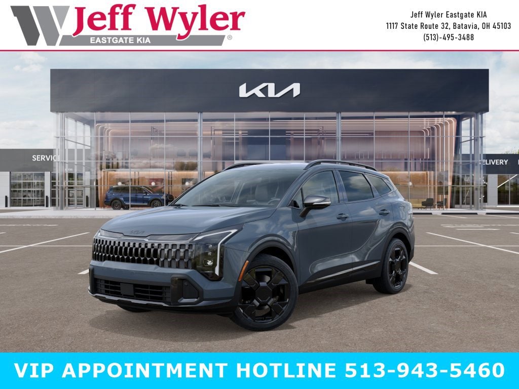 Blue 2026 Kia Sportage Hybrid X-Line 1.6L Turbo GDI 4-Cylinder AWD 6-Speed Automatic 35/36 City/Highway MPG Jeff Wyler Eastgate Auto Mall is honored to offer this stunning 2026 Kia Sportage Hybrid X-Line in Blue. Well equipped with: 4-Wheel Disc Brakes, 6 Speakers, ABS brakes, Air Conditioning, All Weather Floor Mats, Alloy wheels, Auto High-beam Headlights, Auto-Dimming Mirror with HomeLink, Automatic temperature control, Brake assist, Bumpers: body-color, Delay-off headlights, Driver door bin, Driver vanity mirror, Dual front impact airbags, Dual front side impact airbags, Electronic Stability Control, Emergency communication system, Four wheel independent suspension, Front anti-roll bar, Front Bucket Seats, Front Center Armrest, Front dual zone A/C, Fully automatic headlights, Heated door mirrors, Heated Front Bucket Seats, Heated front seats, Illuminated entry, Leather steering wheel, Low tire pressure warning, Occupant sensing airbag, Outside temperature display, Overhead airbag, Overhead console, Panic alarm, Passenger door bin, Passenger vanity mirror, Power door mirrors, Power driver seat, Power Liftgate, Power moonroof, Power steering, Power windows, Radio: AM/FM/HD Audio System, Rain sensing wipers, Rear anti-roll bar, Rear seat center armrest, Rear side impact airbag, Rear window defroster, Rear window wiper, Remote keyless entry, Security system, Speed control, Speed-sensing steering, Split folding rear seat, Spoiler, Steering wheel mounted audio controls, Syntex Premium Leatherette Seat Trim, Tachometer, Telescoping steering wheel, Tilt steering wheel, Traction control, Trip computer, Turn signal indicator mirrors, Variably intermittent wipers, and Wheels: 19" x 7.5J Gloss Black Alloy. 35/36 City/Highway MPG