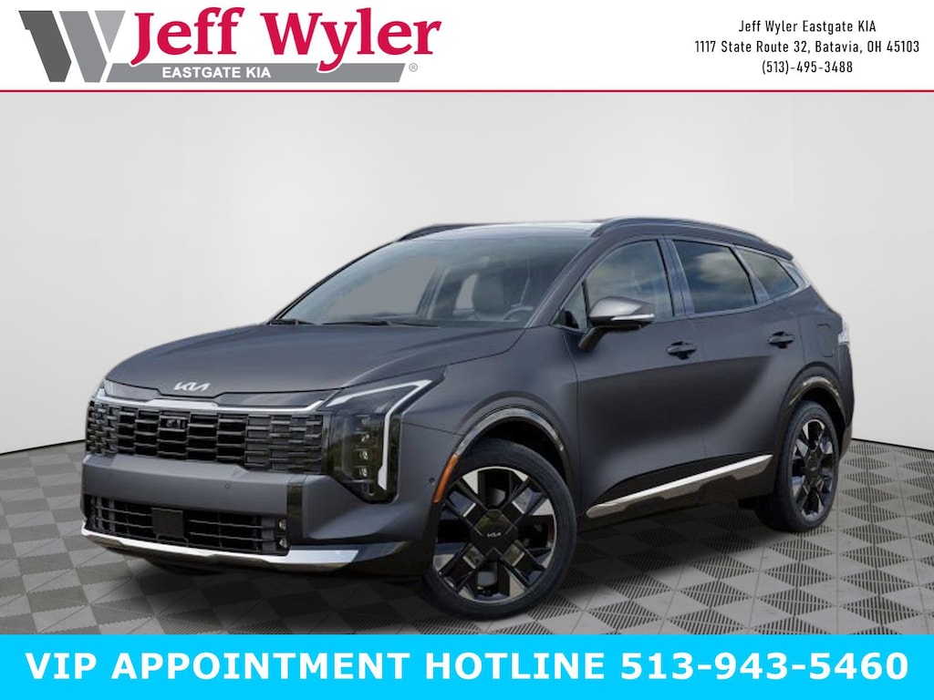Shadow Matte Gray 2026 Kia Sportage Hybrid SX-Prestige 1.6L Turbo GDI 4-Cylinder AWD 6-Speed Automatic 35/36 City/Highway MPG Jeff Wyler Eastgate Auto Mall is very proud to offer this charming-looking 2026 Kia Sportage Hybrid SX-Prestige in Shadow Matte Gray. Well equipped with: Carmine Red Interior Color Package, 4-Wheel Disc Brakes, 8 Speakers, ABS brakes, Air Conditioning, Alloy wheels, AM/FM radio: SiriusXM, Auto High-beam Headlights, Auto-Dimming Mirror with HomeLink, Automatic temperature control, Brake assist, Bumpers: body-color, Compass, Delay-off headlights, Driver door bin, Driver vanity mirror, Dual front impact airbags, Dual front side impact airbags, Electronic Stability Control, Emergency communication system, Four wheel independent suspension, Front anti-roll bar, Front Bucket Seats, Front Center Armrest, Front dual zone A/C, Front fog lights, Front reading lights, Fully automatic headlights, harman/kardon® Speakers, Heated and Ventilated Front Bucket Seats, Heated door mirrors, Heated front seats, Heated steering wheel, Illuminated entry, Leather steering wheel, Low tire pressure warning, Memory seat, Navigation System, Occupant sensing airbag, Outside temperature display, Overhead airbag, Overhead console, Panic alarm, Passenger door bin, Passenger vanity mirror, Power door mirrors, Power driver seat, Power Liftgate, Power moonroof, Power passenger seat, Power steering, Power windows, Radio: AM/FM/HD Premium Audio System, Rain sensing wipers, Rear anti-roll bar, Rear reading lights, Rear seat center armrest, Rear side impact airbag, Rear window defroster, Rear window wiper, Remote keyless entry, Security system, Speed control, Speed-sensing steering, Split folding rear seat, Spoiler, Steering wheel mounted audio controls, Syntex Premium Leatherette Seat Trim, Tachometer, Telescoping steering wheel, Tilt steering wheel, Traction control, Trip computer, Turn signal indicator mirrors, Variably intermittent wipers, Ventilated front seats, and Wheels: 19" x 7.5J Alloy. 35/36 City/Highway MPG