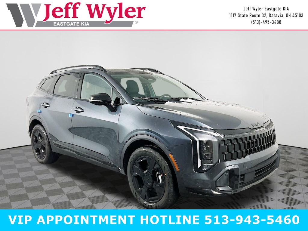 Gravity Gray 2026 Kia Sportage Hybrid X-Line 1.6L Turbo GDI 4-Cylinder AWD 6-Speed Automatic 35/36 City/Highway MPG Jeff Wyler Eastgate Auto Mall is pleased to offer this charming-looking 2026 Kia Sportage Hybrid X-Line in Gravity Gray. Well equipped with: 4-Wheel Disc Brakes, 6 Speakers, ABS brakes, Air Conditioning, Alloy wheels, Auto High-beam Headlights, Auto-Dimming Mirror with HomeLink, Automatic temperature control, Brake assist, Bumpers: body-color, Delay-off headlights, Driver door bin, Driver vanity mirror, Dual front impact airbags, Dual front side impact airbags, Electronic Stability Control, Emergency communication system, Four wheel independent suspension, Front anti-roll bar, Front Bucket Seats, Front Center Armrest, Front dual zone A/C, Fully automatic headlights, Heated door mirrors, Heated Front Bucket Seats, Heated front seats, Illuminated entry, Leather steering wheel, Low tire pressure warning, Occupant sensing airbag, Outside temperature display, Overhead airbag, Overhead console, Panic alarm, Passenger door bin, Passenger vanity mirror, Power door mirrors, Power driver seat, Power Liftgate, Power moonroof, Power steering, Power windows, Radio: AM/FM/HD Audio System, Rain sensing wipers, Rear anti-roll bar, Rear seat center armrest, Rear side impact airbag, Rear window defroster, Rear window wiper, Remote keyless entry, Security system, Speed control, Speed-sensing steering, Split folding rear seat, Spoiler, Steering wheel mounted audio controls, Syntex Premium Leatherette Seat Trim, Tachometer, Telescoping steering wheel, Tilt steering wheel, Traction control, Trip computer, Turn signal indicator mirrors, Variably intermittent wipers, and Wheels: 19" x 7.5J Gloss Black Alloy. 35/36 City/Highway MPG