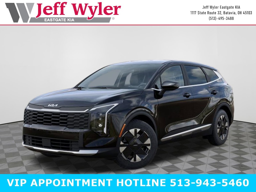 Black 2026 Kia Sportage Hybrid LX 1.6L Turbo GDI 4-Cylinder FWD 6-Speed Automatic 41/44 City/Highway MPG Jeff Wyler Eastgate Auto Mall is pleased to offer this superb 2026 Kia Sportage Hybrid LX in Black. Well equipped with: 4-Wheel Disc Brakes, 6 Speakers, ABS brakes, Air Conditioning, All Weather Floor Mats, Alloy wheels, AM/FM radio, Auto Dimming Mirror with HomeLink, Auto High-beam Headlights, Automatic temperature control, Brake assist, Bumpers: body-color, Cloth Seat Trim, Delay-off headlights, Driver door bin, Driver vanity mirror, Dual front impact airbags, Dual front side impact airbags, Electronic Stability Control, Emergency communication system, Four wheel independent suspension, Front anti-roll bar, Front Bucket Seats, Front Center Armrest, Front dual zone A/C, Fully automatic headlights, Illuminated entry, Leather steering wheel, Low tire pressure warning, Occupant sensing airbag, Outside temperature display, Overhead airbag, Overhead console, Panic alarm, Passenger door bin, Passenger vanity mirror, Power door mirrors, Power steering, Power windows, Radio: AM/FM/HD Audio System, Rain sensing wipers, Rear anti-roll bar, Rear seat center armrest, Rear side impact airbag, Rear window defroster, Rear window wiper, Remote keyless entry, Security system, Speed control, Speed-sensing steering, Split folding rear seat, Spoiler, Steering wheel mounted audio controls, Tachometer, Telescoping steering wheel, Tilt steering wheel, Traction control, Trip computer, Variably intermittent wipers, and Wheels: 17" x 7J Aero Alloy. 41/44 City/Highway MPG