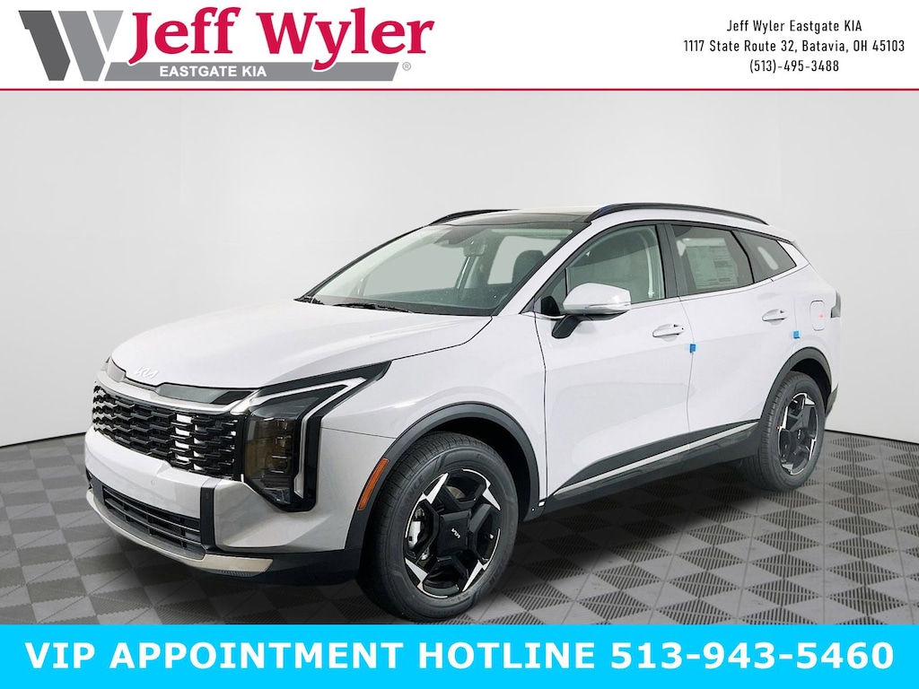 Wolf Gray 2026 Kia Sportage Hybrid EX 1.6L Turbo GDI 4-Cylinder AWD 6-Speed Automatic 35/36 City/Highway MPG Jeff Wyler Eastgate Auto Mall is proud to offer this wonderful-looking 2026 Kia Sportage Hybrid EX in Wolf Gray. Well equipped with: EX Panoramic Sunroof Package (LED Interior Lighting and Panoramic Sunroof), 4-Wheel Disc Brakes, 6 Speakers, ABS brakes, Air Conditioning, All Weather Floor Mats, Alloy wheels, Auto High-beam Headlights, Automatic temperature control, Brake assist, Bumpers: body-color, Delay-off headlights, Driver door bin, Driver vanity mirror, Dual front impact airbags, Dual front side impact airbags, Electronic Stability Control, Emergency communication system, Four wheel independent suspension, Front anti-roll bar, Front Bucket Seats, Front Center Armrest, Front dual zone A/C, Fully automatic headlights, Heated door mirrors, Heated Front Bucket Seats, Heated front seats, Illuminated entry, Leather steering wheel, Low tire pressure warning, Occupant sensing airbag, Outside temperature display, Overhead airbag, Overhead console, Panic alarm, Passenger door bin, Passenger vanity mirror, Power door mirrors, Power driver seat, Power Liftgate, Power steering, Power windows, Radio: AM/FM/HD Audio System, Rain sensing wipers, Rear anti-roll bar, Rear seat center armrest, Rear side impact airbag, Rear window defroster, Rear window wiper, Remote keyless entry, Security system, Speed control, Speed-sensing steering, Split folding rear seat, Spoiler, Steering wheel mounted audio controls, Syntex Leatherette Seat Trim, Tachometer, Telescoping steering wheel, Tilt steering wheel, Traction control, Trip computer, Turn signal indicator mirrors, Variably intermittent wipers, and Wheels: 18" x 7.5J Machined Alloy. 35/36 City/Highway MPG Price includes: $500 - Sticker Sales Event Retail Bonus Cash. Exp. 01/02/2026