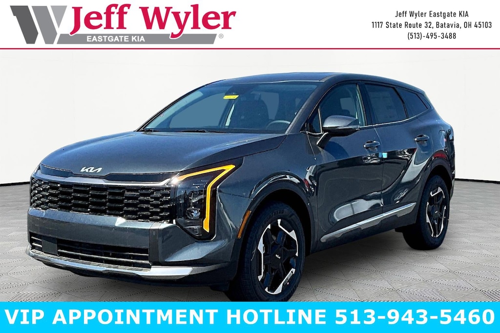 Gravity Gray 2026 Kia Sportage Hybrid S 1.6L Turbo GDI 4-Cylinder AWD 6-Speed Automatic 35/36 City/Highway MPG Jeff Wyler Eastgate Auto Mall is excited to offer this handsome 2026 Kia Sportage Hybrid S in Gravity Gray. Well equipped with: 4-Wheel Disc Brakes, 6 Speakers, ABS brakes, Air Conditioning, All Weather Floor Mats, Alloy wheels, Auto High-beam Headlights, Auto-Dimming Mirror with HomeLink, Automatic temperature control, Brake assist, Bumpers: body-color, Cloth Seat Trim, Delay-off headlights, Driver door bin, Driver vanity mirror, Dual front impact airbags, Dual front side impact airbags, Electronic Stability Control, Emergency communication system, Four wheel independent suspension, Front anti-roll bar, Front Bucket Seats, Front Center Armrest, Front dual zone A/C, Fully automatic headlights, Heated door mirrors, Heated Front Bucket Seats, Heated front seats, Illuminated entry, Leather steering wheel, Low tire pressure warning, Mud Guards, Occupant sensing airbag, Outside temperature display, Overhead airbag, Overhead console, Panic alarm, Passenger door bin, Passenger vanity mirror, Power door mirrors, Power driver seat, Power steering, Power windows, Radio: AM/FM/HD Audio System, Rain sensing wipers, Rear anti-roll bar, Rear seat center armrest, Rear side impact airbag, Rear window defroster, Rear window wiper, Remote keyless entry, Security system, Speed control, Speed-sensing steering, Split folding rear seat, Spoiler, Steering wheel mounted audio controls, Tachometer, Telescoping steering wheel, Tilt steering wheel, Traction control, Trip computer, Turn signal indicator mirrors, Variably intermittent wipers, and Wheels: 18" x 7.5J Dark Finish Alloy. 35/36 City/Highway MPG