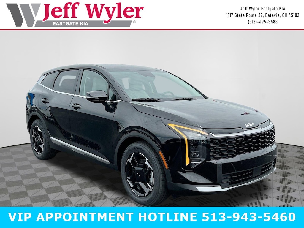 Ebony Black 2026 Kia Sportage EX I4 FWD 8-Speed Automatic 25/33 City/Highway MPG Jeff Wyler Eastgate Auto Mall is very proud to offer this wonderful-looking 2026 Kia Sportage EX in Ebony Black. Well equipped with: 18" x 7.5J Alloy Wheels, 4-Wheel Disc Brakes, 6 Speakers, ABS brakes, Air Conditioning, All Weather Mats, Alloy wheels, Auto High-beam Headlights, Automatic temperature control, Brake assist, Bumpers: body-color, Delay-off headlights, Driver door bin, Driver vanity mirror, Dual front impact airbags, Dual front side impact airbags, Electronic Stability Control, Emergency communication system: Kia Connect (includes 1 year free trial), Four wheel independent suspension, Front anti-roll bar, Front Bucket Seats, Front Center Armrest, Front dual zone A/C, Fully automatic headlights, Heated door mirrors, Heated Front Bucket Seats, Heated front seats, Illuminated entry, Leather Shift Knob, Leather steering wheel, Low tire pressure warning, Occupant sensing airbag, Outside temperature display, Overhead airbag, Overhead console, Panic alarm, Passenger door bin, Passenger vanity mirror, Power door mirrors, Power driver seat, Power Liftgate, Power steering, Power windows, Radio: AM/FM/HD Audio System, Rain sensing wipers, Rear anti-roll bar, Rear seat center armrest, Rear side impact airbag, Rear window defroster, Rear window wiper, Remote keyless entry, Security system, Speed control, Speed-sensing steering, Split folding rear seat, Spoiler, Steering wheel mounted audio controls, SynTex Leatherette Seat Trim, Tachometer, Telescoping steering wheel, Tilt steering wheel, Traction control, Trip computer, Turn signal indicator mirrors, and Variably intermittent wipers. 25/33 City/Highway MPG
