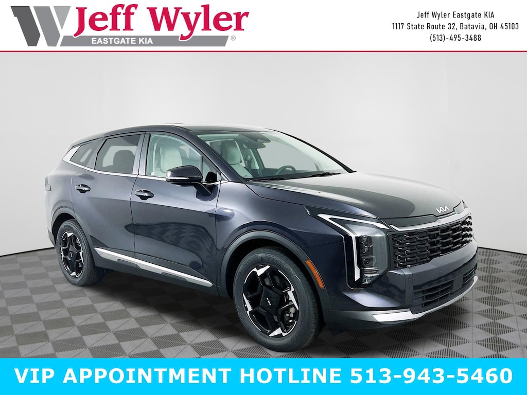 Panthera Metal Gray 2026 Kia Sportage EX I4 FWD 8-Speed Automatic 25/33 City/Highway MPG Jeff Wyler Eastgate Auto Mall is proud to offer this gorgeous 2026 Kia Sportage EX in Panthera Metal Gray. Well equipped with: 18" x 7.5J Alloy Wheels, 4-Wheel Disc Brakes, 6 Speakers, ABS brakes, Air Conditioning, All Weather Mats, Alloy wheels, Auto High-beam Headlights, Automatic temperature control, Brake assist, Bumpers: body-color, Delay-off headlights, Driver door bin, Driver vanity mirror, Dual front impact airbags, Dual front side impact airbags, Electronic Stability Control, Emergency communication system: Kia Connect (includes 1 year free trial), Four wheel independent suspension, Front anti-roll bar, Front Bucket Seats, Front Center Armrest, Front dual zone A/C, Fully automatic headlights, Heated door mirrors, Heated Front Bucket Seats, Heated front seats, Illuminated entry, Leather Shift Knob, Leather steering wheel, Low tire pressure warning, Occupant sensing airbag, Outside temperature display, Overhead airbag, Overhead console, Panic alarm, Passenger door bin, Passenger vanity mirror, Power door mirrors, Power driver seat, Power Liftgate, Power steering, Power windows, Radio: AM/FM/HD Audio System, Rain sensing wipers, Rear anti-roll bar, Rear seat center armrest, Rear side impact airbag, Rear window defroster, Rear window wiper, Remote keyless entry, Security system, Speed control, Speed-sensing steering, Split folding rear seat, Spoiler, Steering wheel mounted audio controls, SynTex Leatherette Seat Trim, Tachometer, Telescoping steering wheel, Tilt steering wheel, Traction control, Trip computer, Turn signal indicator mirrors, and Variably intermittent wipers. 25/33 City/Highway MPG