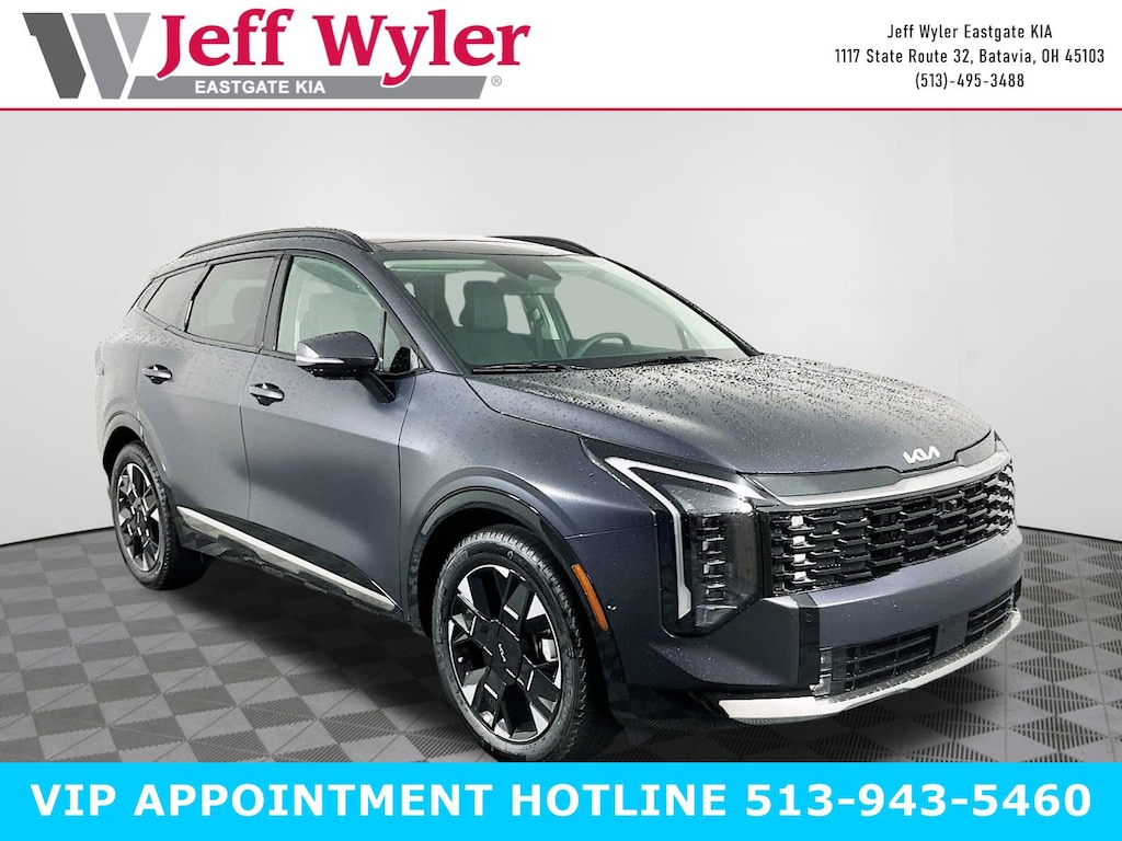 Panthera Metal Matte 2026 Kia Sportage SX-Prestige I4 FWD 8-Speed Automatic 25/33 City/Highway MPG Jeff Wyler Eastgate Auto Mall is proud to offer this outstanding 2026 Kia Sportage SX-Prestige in Panthera Metal Matte. Well equipped with: 4-Wheel Disc Brakes, 8 Speakers, ABS brakes, Air Conditioning, All Weather Mats, Alloy wheels, AM/FM radio: SiriusXM, Auto High-beam Headlights, Automatic temperature control, Brake assist, Bumpers: body-color, Compass, Delay-off headlights, Driver door bin, Driver vanity mirror, Dual front impact airbags, Dual front side impact airbags, Electronic Stability Control, Emergency communication system: Kia Connect (includes 1 year free trial), Four wheel independent suspension, Front anti-roll bar, Front Bucket Seats, Front Center Armrest, Front dual zone A/C, Front fog lights, Front reading lights, Fully automatic headlights, harman/kardon® Speakers, Heated and Ventilated Front Bucket Seats, Heated door mirrors, Heated front seats, Heated steering wheel, Illuminated entry, Leather Shift Knob, Leather steering wheel, Low tire pressure warning, Memory seat, Navigation System, Occupant sensing airbag, Outside temperature display, Overhead airbag, Overhead console, Panic alarm, Passenger door bin, Passenger vanity mirror, Power door mirrors, Power driver seat, Power Liftgate, Power moonroof, Power passenger seat, Power steering, Power windows, Radio: AM/FM/HD Premium Audio System, Rain sensing wipers, Rear anti-roll bar, Rear reading lights, Rear seat center armrest, Rear side impact airbag, Rear window defroster, Rear window wiper, Remote keyless entry, Security system, Speed control, Speed-sensing steering, Split folding rear seat, Spoiler, Steering wheel mounted audio controls, Syntex Premium Leatherette Seat Trim, Tachometer, Telescoping steering wheel, Tilt steering wheel, Traction control, Trip computer, Turn signal indicator mirrors, Variably intermittent wipers, Ventilated front seats, and Wheels: 19" x 7.5J Alloy. 25/33 City/Highway MPG