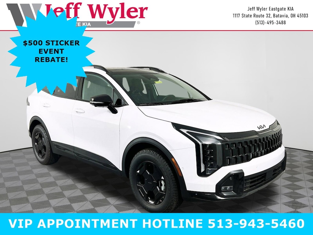 Glacial White Pearl 2026 Kia Sportage X-Pro Prestige I4 AWD 8-Speed Automatic 23/30 City/Highway MPG Jeff Wyler Eastgate Auto Mall is delighted to offer this attractive-looking 2026 Kia Sportage X-Pro Prestige in Glacial White Pearl. Well equipped with: 4-Wheel Disc Brakes, 8 Speakers, ABS brakes, Air Conditioning, All Weather Mats, Alloy wheels, AM/FM radio: SiriusXM, Auto High-beam Headlights, Automatic temperature control, Brake assist, Bumpers: body-color, Cargo Tray, Compass, Delay-off headlights, Driver door bin, Driver vanity mirror, Dual front impact airbags, Dual front side impact airbags, Electronic Stability Control, Emergency communication system: Kia Connect (includes 1 year free trial), Four wheel independent suspension, Front anti-roll bar, Front Bucket Seats, Front Center Armrest, Front dual zone A/C, Front fog lights, Front reading lights, Fully automatic headlights, harman/kardon® Speakers, Heated & Ventilated Front Bucket Seats, Heated door mirrors, Heated front seats, Heated steering wheel, Illuminated entry, Leather Shift Knob, Leather steering wheel, Low tire pressure warning, Memory seat, Navigation System, Occupant sensing airbag, Outside temperature display, Overhead airbag, Overhead console, Panic alarm, Passenger door bin, Passenger vanity mirror, Power door mirrors, Power driver seat, Power Liftgate, Power moonroof, Power passenger seat, Power steering, Power windows, Radio: AM/FM/HD Premium Audio System, Rain sensing wipers, Rear anti-roll bar, Rear reading lights, Rear seat center armrest, Rear side impact airbag, Rear window defroster, Rear window wiper, Remote keyless entry, Security system, Speed control, Speed-sensing steering, Split folding rear seat, Spoiler, Steering wheel mounted audio controls, SynTex Premium Leatherette Seat Trim, Tachometer, Telescoping steering wheel, Tilt steering wheel, Traction control, Trip computer, Turn signal indicator mirrors, Variably intermittent wipers, Ventilated front seats, and Wheels: 17" x 7.0J Satin Black Alloy. 23/30 City/Highway MPG Price includes: $500 - Sticker Sales Event Retail Bonus Cash. Exp. 01/02/2026