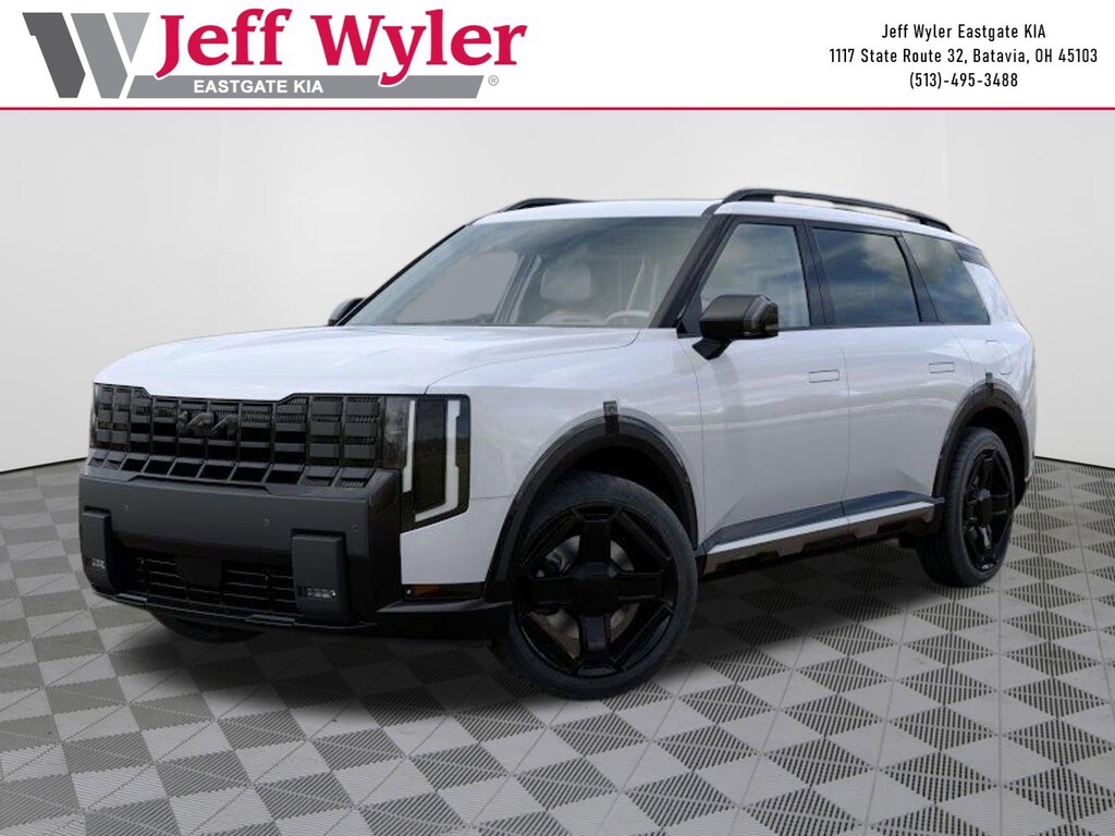 Glacial White Pearl 2027 Kia Telluride X-Line EX 2.5L I4 AWD 8-Speed Automatic Jeff Wyler Eastgate Auto Mall is delighted to offer this outstanding-looking 2027 Kia Telluride X-Line EX in Glacial White Pearl. Well equipped with: 3rd row seats: split-bench, 4-Wheel Disc Brakes, 8 Speakers, ABS brakes, Air Conditioning, Alloy wheels, AM/FM radio: SiriusXM, Apple CarPlay & Android Auto, Auto High-beam Headlights, Auto-dimming Rear-View mirror, Auto-leveling suspension, Automatic temperature control, Brake assist, Bumpers: body-color, Cargo Cover, Cargo Net, Carpeted Floor Mats, Compass, Cross Bars X-Line, Delay-off headlights, Driver door bin, Driver vanity mirror, Dual front impact airbags, Dual front side impact airbags, Electronic Stability Control, Emergency communication system: 911 Connect, Exterior Parking Camera Rear, Four wheel independent suspension, Front anti-roll bar, Front Bucket Seats, Front Center Armrest, Front dual zone A/C, Front reading lights, Fully automatic headlights, Heated and Ventilated Front Bucket Seats, Heated door mirrors, Heated front seats, Heated steering wheel, Illuminated entry, Knee airbag, Low tire pressure warning, Navigation System, Occupant sensing airbag, Outside temperature display, Overhead airbag, Overhead console, Panic alarm, Passenger door bin, Passenger vanity mirror, Power door mirrors, Power driver seat, Power Liftgate, Power moonroof, Power passenger seat, Power steering, Power windows, Radio data system, Radio: AM/FM Display Audio System, Rear air conditioning, Rear anti-roll bar, Rear reading lights, Rear side impact airbag, Rear window defroster, Rear window wiper, Reclining 3rd row seat, Remote keyless entry, Security system, Speed control, Speed-sensing steering, Split folding rear seat, Spoiler, Steering wheel mounted audio controls, SynTex Seat Trim, Tachometer, Telescoping steering wheel, Tilt steering wheel, Traction control, Trip computer, Turn signal indicator mirrors, Variably intermittent wipers, Ventilated front seats, and Wheels: 21" x 8" X-LINE Exclusive Type An Alloy.