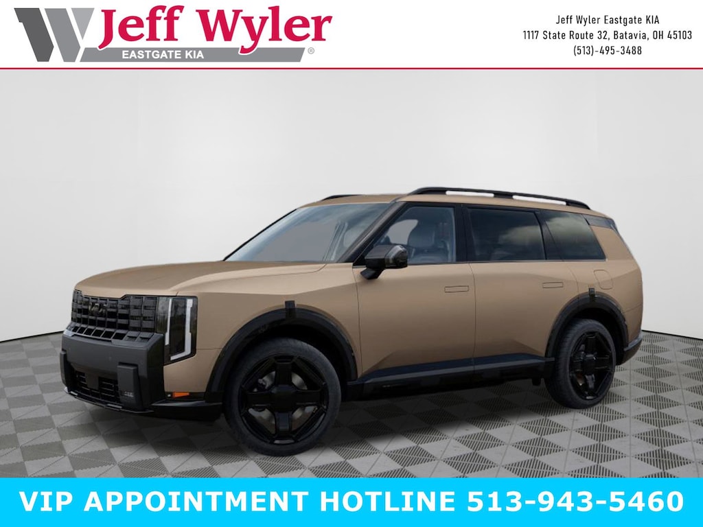 Terrain Brown Matte 2027 Kia Telluride X-Line EX 2.5L I4 AWD 8-Speed Automatic Jeff Wyler Eastgate Auto Mall is proud to offer this outstanding-looking 2027 Kia Telluride X-Line EX in Terrain Brown Matte. Well equipped with: ABS brakes, Active Cruise Control, Alloy wheels, Compass, Electronic Stability Control, Front dual zone A/C, Heated door mirrors, Heated front seats, Illuminated entry, Low tire pressure warning, Navigation System, Power Liftgate, Power moonroof, Remote keyless entry, Traction control, 3rd row seats: split-bench, 4-Wheel Disc Brakes, 8 Speakers, Air Conditioning, AM/FM radio: SiriusXM, Apple CarPlay & Android Auto, Auto High-beam Headlights, Auto-dimming Rear-View mirror, Auto-leveling suspension, Automatic temperature control, Brake assist, Bumpers: body-color, Delay-off headlights, Driver door bin, Driver vanity mirror, Dual front impact airbags, Dual front side impact airbags, Emergency communication system: 911 Connect, Exterior Parking Camera Rear, Four wheel independent suspension, Front anti-roll bar, Front Bucket Seats, Front Center Armrest, Front reading lights, Fully automatic headlights, Heated and Ventilated Front Bucket Seats, Heated steering wheel, Knee airbag, Occupant sensing airbag, Outside temperature display, Overhead airbag, Overhead console, Panic alarm, Passenger door bin, Passenger vanity mirror, Power door mirrors, Power driver seat, Power passenger seat, Power steering, Power windows, Radio data system, Radio: AM/FM Display Audio System, Rear air conditioning, Rear anti-roll bar, Rear reading lights, Rear side impact airbag, Rear window defroster, Rear window wiper, Reclining 3rd row seat, Security system, Speed control, Speed-sensing steering, Split folding rear seat, Spoiler, Steering wheel mounted audio controls, SynTex Seat Trim, Tachometer, Telescoping steering wheel, Tilt steering wheel, Trip computer, Turn signal indicator mirrors, Variably intermittent wipers, Ventilated front seats, and Wheels: 21" x 8" X-LINE Exclusive Type An Alloy. ABS brakes, Active Cruise Control, Alloy wheels, Compass, Electronic Stability Control, Front dual zone A/C, Heated door mirrors, Heated front seats, Illuminated entry, Low tire pressure warning, Navigation System, Power Liftgate, Power moonroof, Remote keyless entry, Traction control.
