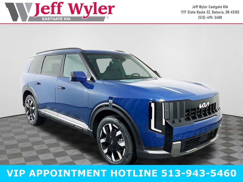 Midnight Lake Blue 2027 Kia Telluride S 2.5L I4 AWD 8-Speed Automatic Jeff Wyler Eastgate Auto Mall is proud to offer this gorgeous-looking 2027 Kia Telluride S in Midnight Lake Blue. Well equipped with: ABS brakes, Active Cruise Control, Alloy wheels, Compass, Electronic Stability Control, Front dual zone A/C, Heated door mirrors, Heated Front Bucket Seats, Heated front seats, Illuminated entry, Low tire pressure warning, Navigation System, Power Liftgate, Power moonroof, Remote keyless entry, Traction control, 3rd row seats: split-bench, 4-Wheel Disc Brakes, 8 Speakers, Air Conditioning, AM/FM radio: SiriusXM, Apple CarPlay & Android Auto, Auto High-beam Headlights, Automatic temperature control, Brake assist, Bumpers: body-color, Delay-off headlights, Driver door bin, Driver vanity mirror, Dual front impact airbags, Dual front side impact airbags, Emergency communication system: 911 Connect, Exterior Parking Camera Rear, Four wheel independent suspension, Front anti-roll bar, Front Bucket Seats, Front Center Armrest, Front reading lights, Fully automatic headlights, Knee airbag, Occupant sensing airbag, Outside temperature display, Overhead airbag, Overhead console, Panic alarm, Passenger door bin, Passenger vanity mirror, Perforated Cloth/SynTex Seat Trim, Power door mirrors, Power driver seat, Power steering, Power windows, Radio data system, Radio: AM/FM Display Audio System, Rear air conditioning, Rear anti-roll bar, Rear reading lights, Rear side impact airbag, Rear window defroster, Rear window wiper, Reclining 3rd row seat, Security system, Speed control, Speed-sensing steering, Split folding rear seat, Spoiler, Steering wheel mounted audio controls, Tachometer, Telescoping steering wheel, Tilt steering wheel, Trip computer, Turn signal indicator mirrors, Variably intermittent wipers, and Wheels: 20" x 8" Type An Alloy. ABS brakes, Active Cruise Control, Alloy wheels, Compass, Electronic Stability Control, Front dual zone A/C, Heated door mirrors, Heated Front Bucket Seats, Heated front seats, Illuminated entry, Low tire pressure warning, Navigation System, Power Liftgate, Power moonroof, Remote keyless entry, Traction control.