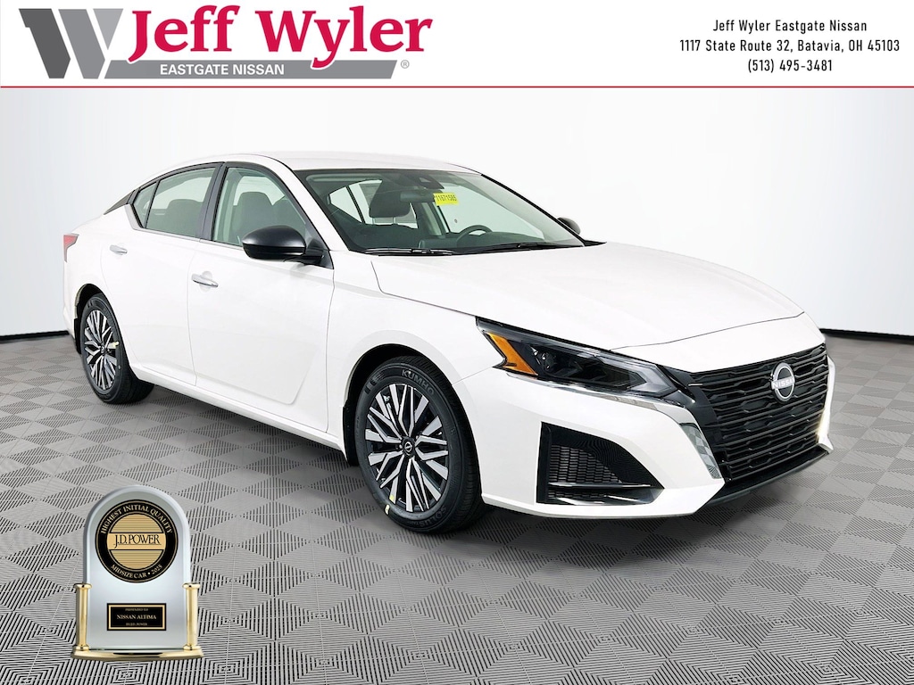 Pearl White Tricoat 2025 Nissan Altima 2.5 SV 2.5L 4-Cylinder DOHC 16V FWD CVT with Xtronic 27/39 City/Highway MPG Jeff Wyler Eastgate Auto Mall is excited to offer this fantastic-looking 2025 Nissan Altima 2.5 SV in Pearl White Tricoat. Well equipped with: 17" Machined Alloy Wheels, 4-Wheel Disc Brakes, 6 Speakers, ABS brakes, Air Conditioning, Alloy wheels, AM/FM radio: SiriusXM, Auto High-beam Headlights, Blind Spot Warning, Body-Colored Splash Guards, Brake assist, Bumpers: body-color, Clear Bumper Protector, Cloth Seat Trim, Delay-off headlights, Driver door bin, Driver vanity mirror, Dual front impact airbags, Dual front side impact airbags, Electronic Stability Control, Floor Mats/Trunk Mat/Hideaway Net, Four wheel independent suspension, Front anti-roll bar, Front Bucket Seats, Front Center Armrest, Front reading lights, Fully automatic headlights, Illuminated entry, Knee airbag, Low tire pressure warning, NissanConnect featuring Apple CarPlay and Android Auto, Occupant sensing airbag, Outside temperature display, Overhead airbag, Overhead console, Panic alarm, Passenger door bin, Passenger vanity mirror, Power door mirrors, Power driver seat, Power steering, Power windows, Premium Paint, Radio data system, Radio: AM/FM Audio System, Rear anti-roll bar, Rear Parking Sensors, Rear reading lights, Rear seat center armrest, Rear side impact airbag, Rear window defroster, Remote keyless entry, Security system, Speed control, Speed-sensing steering, Speed-Sensitive Wipers, Split folding rear seat, Steering wheel mounted audio controls, Tachometer, Telescoping steering wheel, Tilt steering wheel, Traction control, Trip computer, Trunk Organizer Tray, and Variably intermittent wipers. 27/39 City/Highway MPG