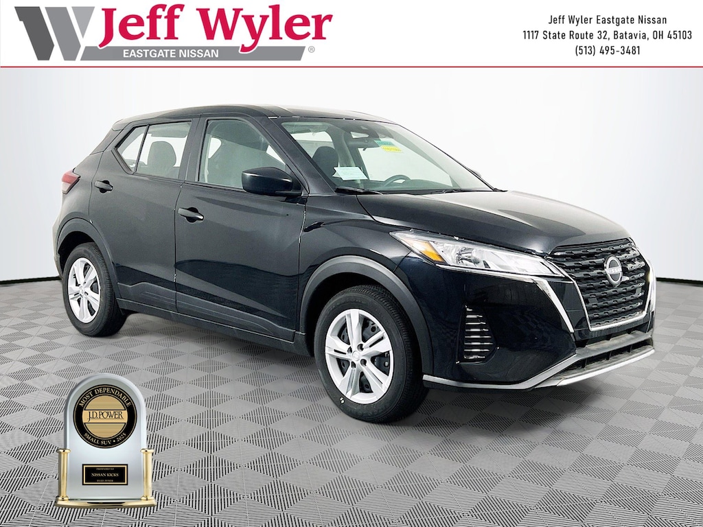 Super Black 2025 Nissan Kicks Play S 1.6L 4-Cylinder DOHC 16V FWD CVT with Xtronic 31/36 City/Highway MPG Jeff Wyler Eastgate Auto Mall is proud to offer this superb-looking 2025 Nissan Kicks Play S in Super Black. Well equipped with: 6 Speakers, ABS brakes, Air Conditioning, AM/FM radio, Auto High-beam Headlights, Blind Spot Warning, Brake assist, Driver door bin, Driver vanity mirror, Driver's Seat Mounted Armrest, Dual front impact airbags, Dual front side impact airbags, Electronic Stability Control, Front anti-roll bar, Front Bucket Seats, Front reading lights, Front wheel independent suspension, Fully automatic headlights, Illuminated entry, Knee airbag, Low tire pressure warning, Occupant sensing airbag, Outside temperature display, Overhead airbag, Panic alarm, Passenger door bin, Passenger vanity mirror, Power door mirrors, Power steering, Power windows, Radio data system, Rear Parking Sensors, Rear reading lights, Rear side impact airbag, Rear window defroster, Rear window wiper, Remote keyless entry, Speed control, Split folding rear seat, Sport steering wheel, Steering wheel mounted audio controls, Tachometer, Telescoping steering wheel, Tilt steering wheel, Traction control, Trip computer, and Variably intermittent wipers. 31/36 City/Highway MPG