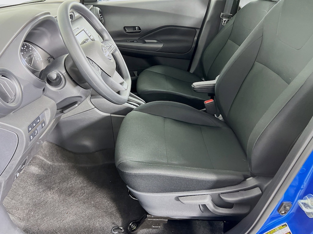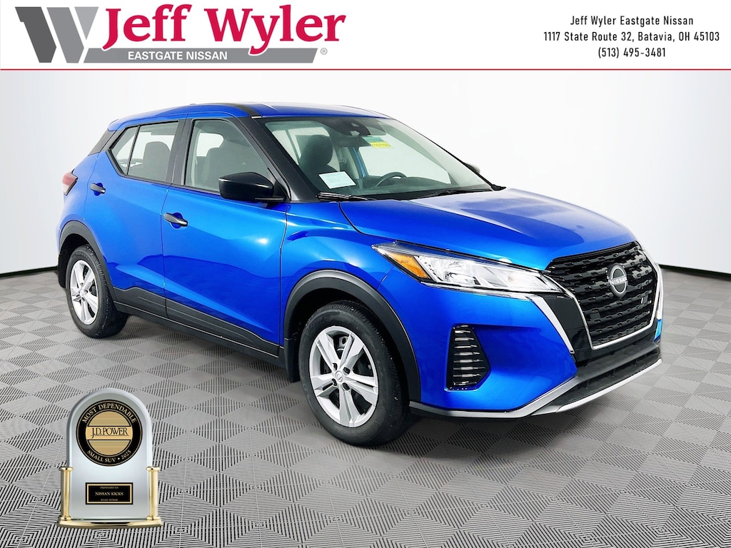 Electric Blue Metallic 2025 Nissan Kicks Play S 1.6L 4-Cylinder DOHC 16V FWD CVT with Xtronic 31/36 City/Highway MPG Jeff Wyler Eastgate Auto Mall is excited to offer this fantastic 2025 Nissan Kicks Play S in Electric Blue Metallic. Well equipped with: 6 Speakers, ABS brakes, Air Conditioning, AM/FM radio, Auto High-beam Headlights, Blind Spot Warning, Brake assist, Driver door bin, Driver vanity mirror, Driver's Seat Mounted Armrest, Dual front impact airbags, Dual front side impact airbags, Electronic Stability Control, Front anti-roll bar, Front Bucket Seats, Front reading lights, Front wheel independent suspension, Fully automatic headlights, Illuminated entry, Knee airbag, Low tire pressure warning, Occupant sensing airbag, Outside temperature display, Overhead airbag, Panic alarm, Passenger door bin, Passenger vanity mirror, Power door mirrors, Power steering, Power windows, Radio data system, Rear Parking Sensors, Rear reading lights, Rear side impact airbag, Rear window defroster, Rear window wiper, Remote keyless entry, Speed control, Split folding rear seat, Sport steering wheel, Steering wheel mounted audio controls, Tachometer, Telescoping steering wheel, Tilt steering wheel, Traction control, Trip computer, and Variably intermittent wipers. 31/36 City/Highway MPG