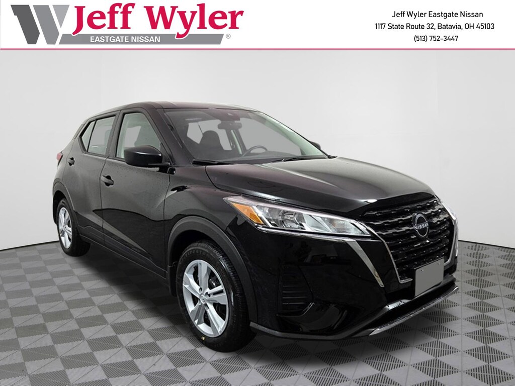 Super Black 2025 Nissan Kicks Play S 1.6L 4-Cylinder DOHC 16V FWD CVT with Xtronic 31/36 City/Highway MPG Jeff Wyler Eastgate Auto Mall is honored to offer this outstanding 2025 Nissan Kicks Play S in Super Black. Well equipped with: 16" Steel Wheels w/Full Covers, 6 Speakers, ABS brakes, Air Conditioning, AM/FM radio, Apple CarPlay/Android Auto, Auto High-beam Headlights, Blind Spot Warning, Brake assist, Bumpers: body-color, Cargo Blocks, Carpeted Floor Mats w/Cargo Mat, Cloth Seat Trim w/Single Stitch, Driver door bin, Driver vanity mirror, Driver's Seat Mounted Armrest, Dual front impact airbags, Dual front side impact airbags, Electronic Stability Control, Front anti-roll bar, Front Bucket Seats, Front reading lights, Front wheel independent suspension, Fully automatic headlights, Illuminated entry, Knee airbag, Low tire pressure warning, Occupant sensing airbag, Outside temperature display, Overhead airbag, Panic alarm, Passenger door bin, Passenger vanity mirror, Power door mirrors, Power steering, Power windows, Radio data system, Radio: AM/FM Audio System, Rear Parking Sensors, Rear reading lights, Rear side impact airbag, Rear window defroster, Rear window wiper, Remote keyless entry, Speed control, Splash Guards Grain (4 Piece), Split folding rear seat, Sport steering wheel, Steering wheel mounted audio controls, Tachometer, Telescoping steering wheel, Tilt steering wheel, Traction control, Trip computer, USB Charging Cable Set - Nissan, and Variably intermittent wipers. 31/36 City/Highway MPG