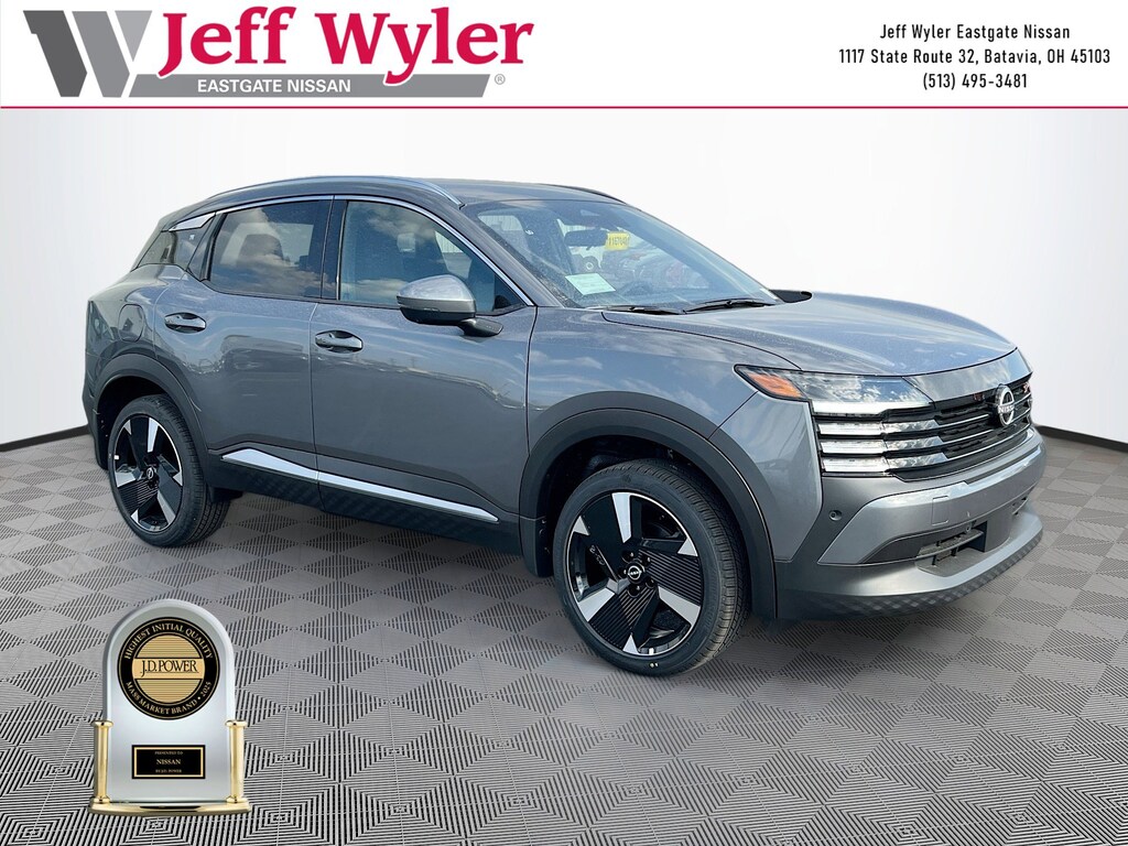Priced below KBB Fair Purchase Price! Gun Metallic 2025 Nissan Kicks SR 2.0L DOHC FWD CVT with Xtronic 28/35 City/Highway MPG Jeff Wyler Eastgate Auto Mall is excited to offer this beautiful 2025 Nissan Kicks SR in Gun Metallic. Well equipped with: 17" Alloy Wheels, 19" Alloy Wheels, 4-Wheel Disc Brakes, 6 Speakers, ABS brakes, Air Conditioning, Alloy wheels, AM/FM radio: Sirius, Auto High-beam Headlights, Automatic temperature control, Brake assist, Bumpers: body-color, Carpeted Floor Mats & Underfloor Protector, Delay-off headlights, Driver door bin, Driver vanity mirror, Dual front impact airbags, Dual front side impact airbags, Electronic Stability Control, Front anti-roll bar, Front Bucket Seats, Front Center Armrest, Front reading lights, Front wheel independent suspension, Fully automatic headlights, Illuminated entry, Knee airbag, Leather Shift Knob, Leather steering wheel, Low tire pressure warning, Occupant sensing airbag, Outside temperature display, Overhead airbag, Overhead console, Panic alarm, Passenger door bin, Passenger vanity mirror, Power door mirrors, Power steering, Power windows, Radio data system, Radio: AM/FM Audio System, Rear anti-roll bar, Rear reading lights, Rear seat center armrest, Rear side impact airbag, Rear window defroster, Rear window wiper, Remote keyless entry, Security system, Speed control, Speed-sensing steering, Splash Guards, Split folding rear seat, Spoiler, Sport Cloth/Leatherette Seat Trim, Sport steering wheel, Steering wheel mounted audio controls, Tachometer, Telescoping steering wheel, Tilt steering wheel, Traction control, Trip computer, Turn signal indicator mirrors, Variably intermittent wipers, and Wireless Apple CarPlay/Wireless Android Auto. 28/35 City/Highway MPG