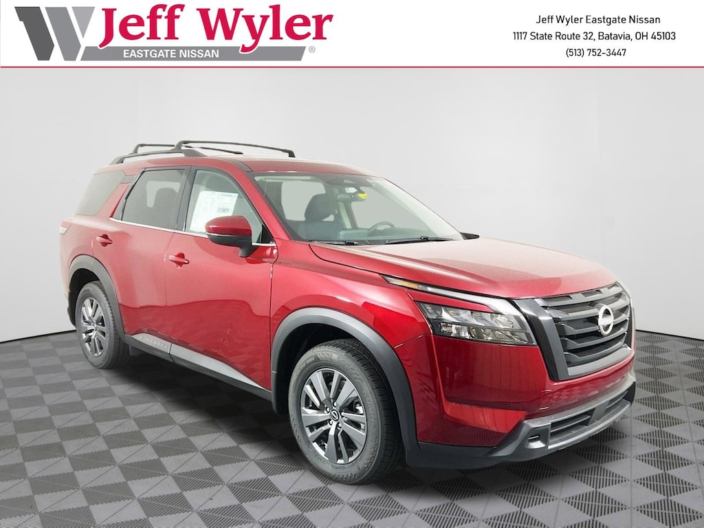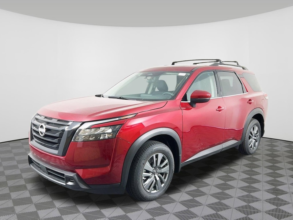 Delivers 27 Highway MPG and 21 City MPG! This Nissan Pathfinder delivers a Regular Unleaded V-6 3.5 L/213 engine powering this Automatic transmission. SCARLET EMBER TINTCOAT, CHARCOAL, CLOTH SEATING SURFACES, [P01] SV PREMIUM PACKAGE -inc: Tow Hitch Receiver & Harness, 6,000 lbs max towing capacity, 2nd-Row Captain Chairs, 2nd-Row Rear Headrest, Panoramic Moonroof.