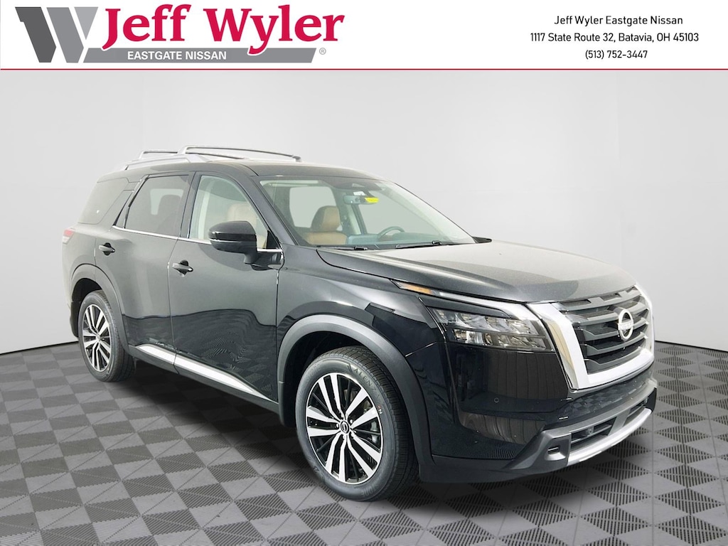 Scores 25 Highway MPG and 20 City MPG! This Nissan Pathfinder boasts a Regular Unleaded V-6 3.5 L/213 engine powering this Automatic transmission. SUPER BLACK, CHESTNUT, SEMI-ANILINE LEATHER-APPOINTED SEATING SURFACES -inc: quilting, [M92] CARGO PACKAGE -inc: dividers and console net, Cargo Area Protector, Cargo Net, First Aid.