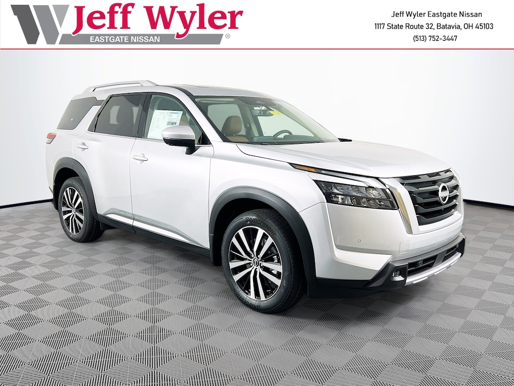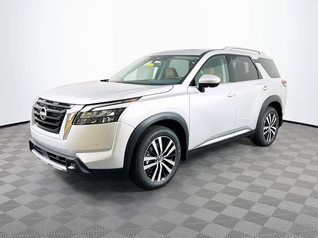 Delivers 25 Highway MPG and 20 City MPG! This Nissan Pathfinder delivers a Regular Unleaded V-6 3.5 L/213 engine powering this Automatic transmission. CHESTNUT, SEMI-ANILINE LEATHER-APPOINTED SEATING SURFACES -inc: quilting, BRILLIANT SILVER METALLIC, [S10] LED FOG LAMPS.