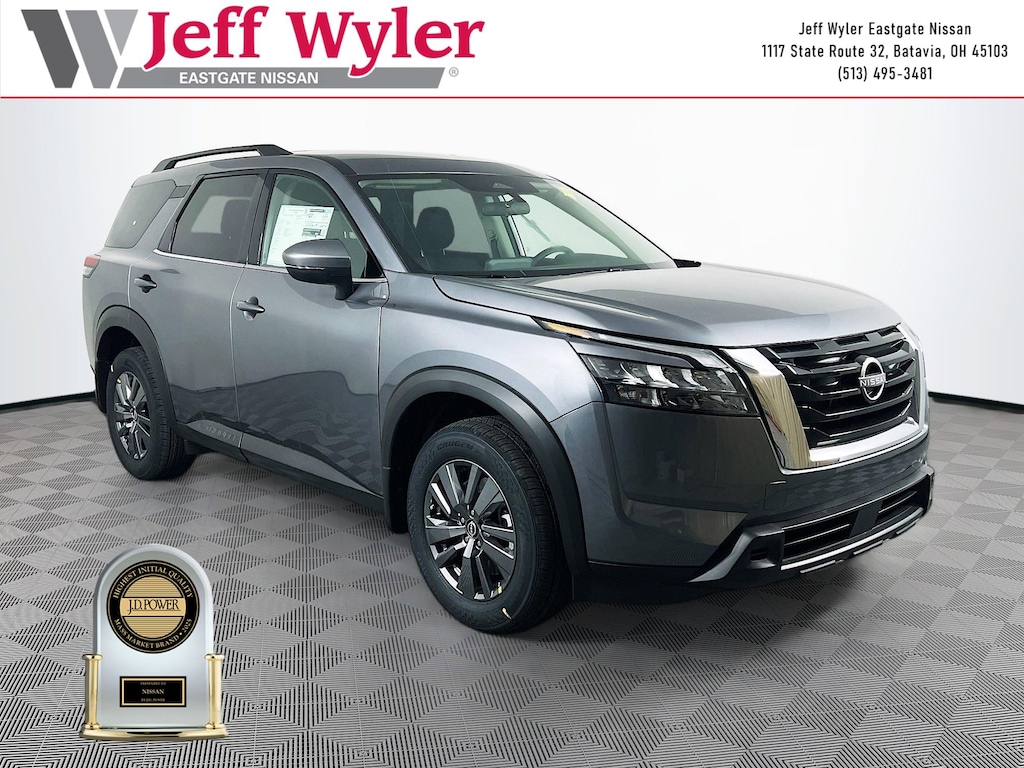 Priced below KBB Fair Purchase Price! Gun Metallic 2025 Nissan Pathfinder SV 3.5L V6 DOHC 4WD 9-Speed Automatic 21/27 City/Highway MPG Jeff Wyler Eastgate Auto Mall is delighted to offer this wonderful 2025 Nissan Pathfinder SV in Gun Metallic. Well equipped with: 3rd row seats: bench, 4-Wheel Disc Brakes, 6 Speakers, ABS brakes, Air Conditioning, Alloy wheels, AM/FM radio: SiriusXM, Auto High-beam Headlights, Automatic temperature control, Brake assist, Bumpers: body-color, Cloth Seating Surfaces, Delay-off headlights, Driver door bin, Driver vanity mirror, Dual front impact airbags, Dual front side impact airbags, Electronic Stability Control, Emergency communication system, Four wheel independent suspension, Front anti-roll bar, Front Bucket Seats, Front Center Armrest, Front dual zone A/C, Front reading lights, Fully automatic headlights, Heated door mirrors, Heated Front Bucket Seats, Heated front seats, Illuminated entry, Knee airbag, Leather steering wheel, Low tire pressure warning, NissanConnect featuring Apple CarPlay and Android Auto, Occupant sensing airbag, Outside temperature display, Overhead airbag, Overhead console, Panic alarm, Passenger door bin, Passenger vanity mirror, Power door mirrors, Power driver seat, Power Liftgate, Power steering, Power windows, Radio data system, Radio: AM/FM Audio System with NissanConnect, Rear air conditioning, Rear anti-roll bar, Rear Parking Sensors, Rear reading lights, Rear seat center armrest, Rear side impact airbag, Rear window defroster, Rear window wiper, Reclining 3rd row seat, Remote keyless entry, Security system, Speed control, Speed-sensing steering, Split folding rear seat, Spoiler, Steering wheel mounted audio controls, Tachometer, Telescoping steering wheel, Tilt steering wheel, Traction control, Trip computer, Turn signal indicator mirrors, Variably intermittent wipers, and Wheels: 18" x 8J Painted Alloy. 21/27 City/Highway MPG Price includes: $5000 - Nissan Customer Cash. Exp. 01/05/2026