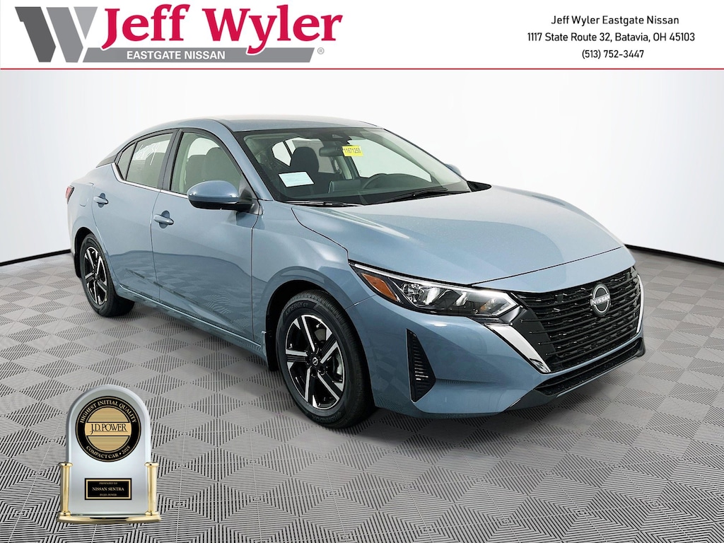 Atlantic Gray Metallic 2025 Nissan Sentra SV 2.0L I4 DOHC FWD CVT with Xtronic 30/40 City/Highway MPG Jeff Wyler Eastgate Auto Mall is honored to offer this good-looking 2025 Nissan Sentra SV in Atlantic Gray Metallic. Well equipped with: All-Weather Package (Dual Zone Auto Climate Control, Heated Exterior Mirrors, Heated Front Seats, Leather-Wrapped Heated Steering Wheel, and Remote Engine Start), 16" Alloy Wheels, 4-Wheel Disc Brakes, 8 Speakers, ABS brakes, Air Conditioning, Alloy wheels, AM/FM radio: SiriusXM, Auto High-beam Headlights, Blind Spot Warning, Body Colored Splash Guards (4-Piece), Brake assist, Bumpers: body-color, Carpeted Floor Mats with Trunk Mat, Clear Rear Bumper Protector, Delay-off headlights, Door Sill Plates, Driver door bin, Driver vanity mirror, Dual front impact airbags, Dual front side impact airbags, Electronic Stability Control, Four wheel independent suspension, Front anti-roll bar, Front Bucket Seats, Front Center Armrest, Front reading lights, Fully automatic headlights, Illuminated entry, Knee airbag, Low tire pressure warning, Nissan Connect Services, NissanConnect featuring Apple CarPlay and Android Auto, NissanConnect Services, Occupant sensing airbag, Outside temperature display, Overhead airbag, Overhead console, Panic alarm, Passenger door bin, Passenger vanity mirror, Power door mirrors, Power steering, Power windows, Premium Paint, Radio data system, Radio: AM/FM with RDS/MP3/Aux-in, Rear anti-roll bar, Rear Parking Sensors, Rear side impact airbag, Rear window defroster, Remote keyless entry, Security system, Speed control, Speed-sensing steering, Split folding rear seat, Steering wheel mounted audio controls, Tachometer, Telescoping steering wheel, Tilt steering wheel, Traction control, Trip computer, Upgraded Cloth Seat Trim, Variably intermittent wipers, and Wi-Fi Hotspot. 30/40 City/Highway MPG Price includes: $500 - Nissan MY25 Sentra Bonus Cash. Exp. 01/05/2026