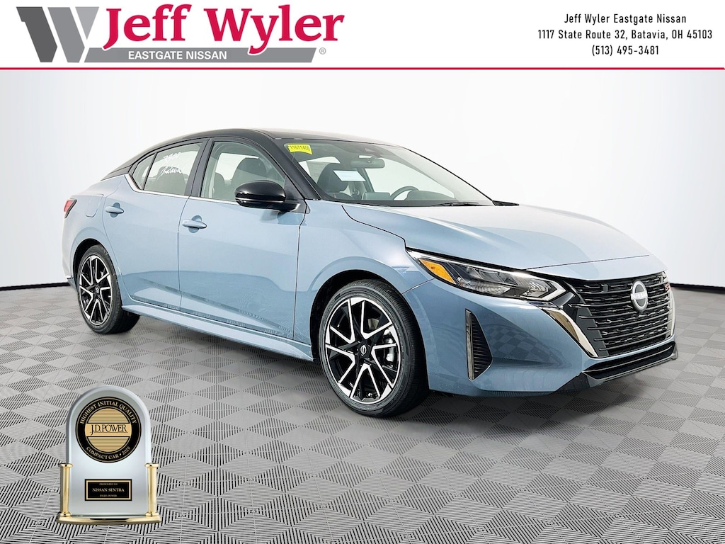 Priced below KBB Fair Purchase Price! Atlantic Gray/Super Black 2025 Nissan Sentra SR 2.0L I4 DOHC FWD CVT with Xtronic 30/38 City/Highway MPG Jeff Wyler Eastgate Auto Mall is honored to offer this great-looking 2025 Nissan Sentra SR in Atlantic Gray/Super Black. Well equipped with: 18" Alloy Wheels, 2-Tone Premium Paint, 4-Wheel Disc Brakes, 8 Speakers, ABS brakes, Air Conditioning, Alloy wheels, AM/FM radio: SiriusXM, Auto High-beam Headlights, Automatic temperature control, Blind Spot Warning, Brake assist, Bumpers: body-color, Carpeted Floor Mats with Trunk Mat, Clear Rear Bumper Protector, Delay-off headlights, Door Sill Plates, Driver door bin, Driver vanity mirror, Dual front impact airbags, Dual front side impact airbags, Electronic Stability Control, Four wheel independent suspension, Front anti-roll bar, Front Bucket Seats, Front Center Armrest, Front dual zone A/C, Front reading lights, Fully automatic headlights, Heated door mirrors, Heated Front Bucket Seats, Heated front seats, Illuminated entry, Knee airbag, Leather Shift Knob, Low tire pressure warning, NissanConnect featuring Apple CarPlay and Android Auto, Occupant sensing airbag, Outside temperature display, Overhead airbag, Overhead console, Panic alarm, Passenger door bin, Passenger vanity mirror, Power door mirrors, Power steering, Power windows, Radio data system, Radio: AM/FM with RDS/MP3/Aux-in, Rear anti-roll bar, Rear Parking Sensors, Rear seat center armrest, Rear side impact airbag, Rear window defroster, Remote keyless entry, Security system, Speed control, Speed-sensing steering, Split folding rear seat, Spoiler, Sport Cloth Seat Trim, Steering wheel mounted audio controls, Tachometer, Telescoping steering wheel, Tilt steering wheel, Traction control, Trip computer, Turn signal indicator mirrors, and Variably intermittent wipers. 30/38 City/Highway MPG Price includes: $500 - Nissan MY25 Sentra Bonus Cash. Exp. 01/05/2026 $500 - Nissan National Holiday Bonus Cash. Exp. 01/02/2026
