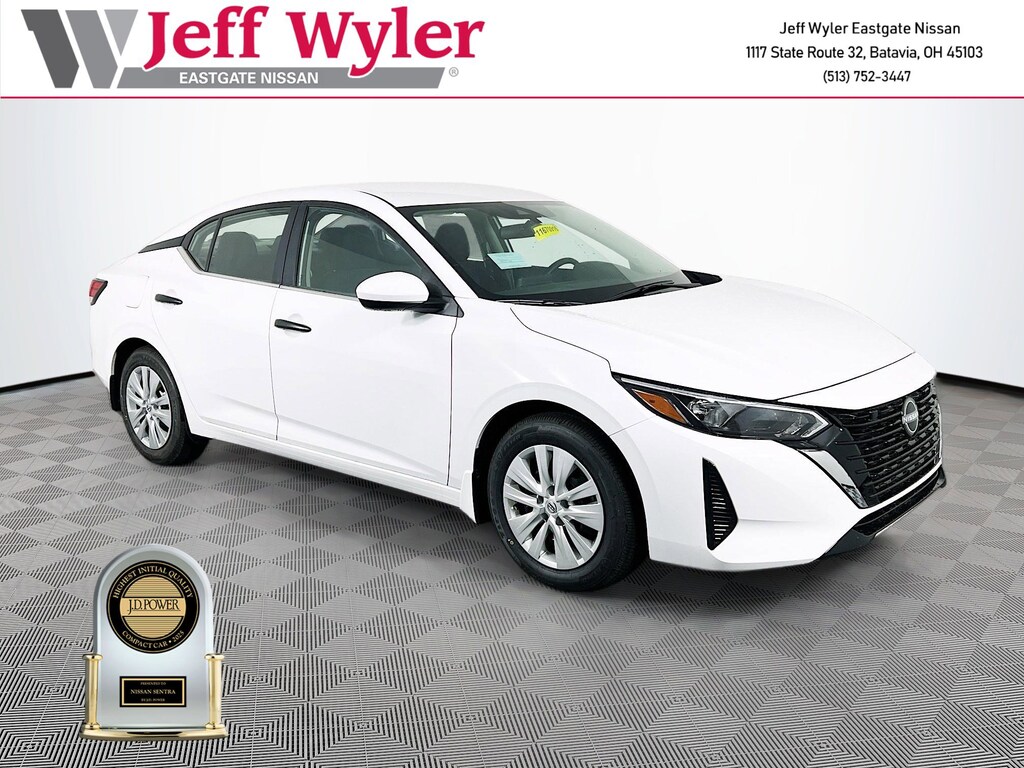 Priced below KBB Fair Purchase Price! Fresh Powder 2025 Nissan Sentra S 2.0L I4 DOHC FWD CVT with Xtronic 30/40 City/Highway MPG Jeff Wyler Eastgate Auto Mall is pumped up to offer this terrific-looking 2025 Nissan Sentra S in Fresh Powder. Well equipped with: 4 Speakers, ABS brakes, Air Conditioning, AM/FM radio, Auto High-beam Headlights, Blind Spot Warning, Body Colored Splash Guards (4-Piece), Brake assist, Bumpers: body-color, Carpeted Floor Mats with Trunk Mat, Cloth Seat Trim, Delay-off headlights, Driver door bin, Driver vanity mirror, Dual front impact airbags, Dual front side impact airbags, Electronic Stability Control, Four wheel independent suspension, Front anti-roll bar, Front Bucket Seats, Front Center Armrest, Front reading lights, Fully automatic headlights, Illuminated entry, Knee airbag, Low tire pressure warning, Nissan USB Charging Cable Set, NissanConnect featuring Apple CarPlay and Android Auto, Occupant sensing airbag, Outside temperature display, Overhead airbag, Overhead console, Panic alarm, Passenger door bin, Passenger vanity mirror, Power door mirrors, Power steering, Power windows, Radio data system, Radio: AM/FM with RDS/MP3/Aux-in, Rear anti-roll bar, Rear Parking Sensors, Rear side impact airbag, Rear window defroster, Remote keyless entry, Speed control, Speed-sensing steering, Split folding rear seat, Steering wheel mounted audio controls, Tachometer, Telescoping steering wheel, Tilt steering wheel, Traction control, Trip computer, Variably intermittent wipers, and Wheels: 16" Steel with Full Covers. 30/40 City/Highway MPG Price includes: $500 - Nissan MY25 Sentra Bonus Cash. Exp. 01/05/2026
