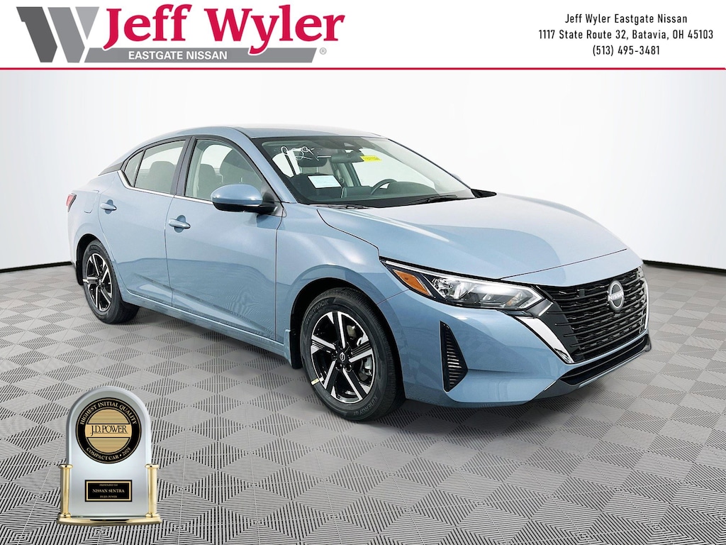 Priced below KBB Fair Purchase Price! Atlantic Gray Metallic 2025 Nissan Sentra SV 2.0L I4 DOHC FWD CVT with Xtronic 30/40 City/Highway MPG Jeff Wyler Eastgate Auto Mall is honored to offer this superb-looking 2025 Nissan Sentra SV in Atlantic Gray Metallic. Well equipped with: 16" Alloy Wheels, 4-Wheel Disc Brakes, 8 Speakers, ABS brakes, Air Conditioning, Alloy wheels, AM/FM radio: SiriusXM, Auto High-beam Headlights, Blind Spot Warning, Body Colored Splash Guards (4-Piece), Brake assist, Bumpers: body-color, Carpeted Floor Mats with Trunk Mat, Clear Rear Bumper Protector, Delay-off headlights, Door Sill Plates, Driver door bin, Driver vanity mirror, Dual front impact airbags, Dual front side impact airbags, Electronic Stability Control, Four wheel independent suspension, Front anti-roll bar, Front Bucket Seats, Front Center Armrest, Front reading lights, Fully automatic headlights, Illuminated entry, Knee airbag, Low tire pressure warning, NissanConnect featuring Apple CarPlay and Android Auto, Occupant sensing airbag, Outside temperature display, Overhead airbag, Overhead console, Panic alarm, Passenger door bin, Passenger vanity mirror, Power door mirrors, Power steering, Power windows, Premium Paint, Radio data system, Radio: AM/FM with RDS/MP3/Aux-in, Rear anti-roll bar, Rear Parking Sensors, Rear side impact airbag, Rear window defroster, Remote keyless entry, Security system, Speed control, Speed-sensing steering, Split folding rear seat, Steering wheel mounted audio controls, Tachometer, Telescoping steering wheel, Tilt steering wheel, Traction control, Trip computer, Upgraded Cloth Seat Trim, and Variably intermittent wipers. 30/40 City/Highway MPG Price includes: $500 - Nissan MY25 Sentra Bonus Cash. Exp. 01/05/2026 $500 - Nissan National Holiday Bonus Cash. Exp. 01/02/2026
