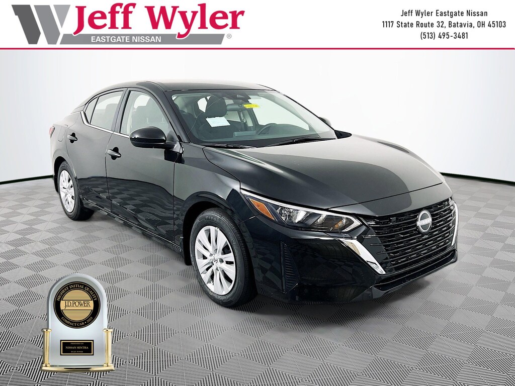 Priced below KBB Fair Purchase Price! Super Black 2025 Nissan Sentra S 2.0L I4 DOHC FWD CVT with Xtronic 30/40 City/Highway MPG Jeff Wyler Eastgate Auto Mall is excited to offer this beautiful 2025 Nissan Sentra S in Super Black. Well equipped with: 4 Speakers, ABS brakes, Air Conditioning, AM/FM radio, Auto High-beam Headlights, Blind Spot Warning, Body Colored Splash Guards (4-Piece), Brake assist, Bumpers: body-color, Carpeted Floor Mats with Trunk Mat, Cloth Seat Trim, Delay-off headlights, Driver door bin, Driver vanity mirror, Dual front impact airbags, Dual front side impact airbags, Electronic Stability Control, Four wheel independent suspension, Front anti-roll bar, Front Bucket Seats, Front Center Armrest, Front reading lights, Fully automatic headlights, Illuminated entry, Knee airbag, Low tire pressure warning, NissanConnect featuring Apple CarPlay and Android Auto, Occupant sensing airbag, Outside temperature display, Overhead airbag, Overhead console, Panic alarm, Passenger door bin, Passenger vanity mirror, Power door mirrors, Power steering, Power windows, Radio data system, Radio: AM/FM with RDS/MP3/Aux-in, Rear anti-roll bar, Rear Parking Sensors, Rear side impact airbag, Rear window defroster, Remote keyless entry, Speed control, Speed-sensing steering, Split folding rear seat, Steering wheel mounted audio controls, Tachometer, Telescoping steering wheel, Tilt steering wheel, Traction control, Trip computer, Variably intermittent wipers, and Wheels: 16" Steel with Full Covers. 30/40 City/Highway MPG Price includes: $500 - Nissan MY25 Sentra Bonus Cash. Exp. 01/05/2026 $500 - Nissan National Holiday Bonus Cash. Exp. 01/02/2026