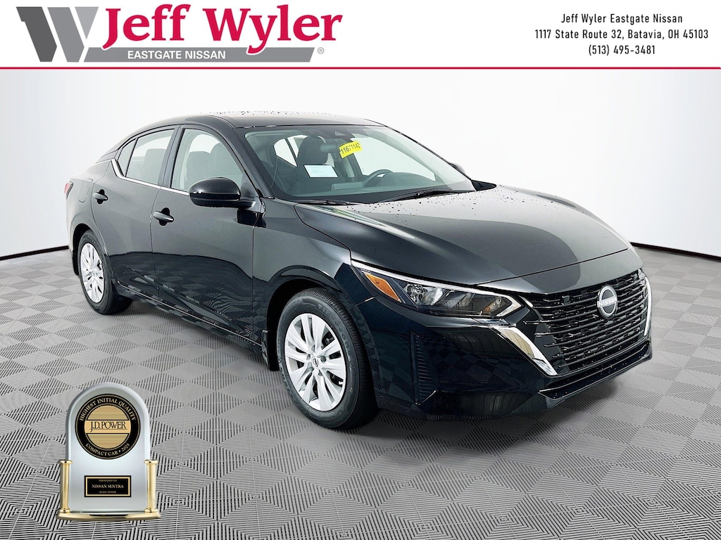 Priced below KBB Fair Purchase Price! Super Black 2025 Nissan Sentra S 2.0L I4 DOHC FWD CVT with Xtronic 30/40 City/Highway MPG Jeff Wyler Eastgate Auto Mall is honored to offer this great 2025 Nissan Sentra S in Super Black. Well equipped with: 4 Speakers, ABS brakes, Air Conditioning, AM/FM radio, Auto High-beam Headlights, Blind Spot Warning, Body Colored Splash Guards (4-Piece), Brake assist, Bumpers: body-color, Carpeted Floor Mats with Trunk Mat, Cloth Seat Trim, Delay-off headlights, Driver door bin, Driver vanity mirror, Dual front impact airbags, Dual front side impact airbags, Electronic Stability Control, Four wheel independent suspension, Front anti-roll bar, Front Bucket Seats, Front Center Armrest, Front reading lights, Fully automatic headlights, Illuminated entry, Knee airbag, Low tire pressure warning, NissanConnect featuring Apple CarPlay and Android Auto, Occupant sensing airbag, Outside temperature display, Overhead airbag, Overhead console, Panic alarm, Passenger door bin, Passenger vanity mirror, Power door mirrors, Power steering, Power windows, Radio data system, Radio: AM/FM with RDS/MP3/Aux-in, Rear anti-roll bar, Rear Parking Sensors, Rear side impact airbag, Rear window defroster, Remote keyless entry, Speed control, Speed-sensing steering, Split folding rear seat, Steering wheel mounted audio controls, Tachometer, Telescoping steering wheel, Tilt steering wheel, Traction control, Trip computer, Variably intermittent wipers, and Wheels: 16" Steel with Full Covers. 30/40 City/Highway MPG Price includes: $500 - Nissan MY25 Sentra Bonus Cash. Exp. 01/05/2026 $500 - Nissan National Holiday Bonus Cash. Exp. 01/02/2026