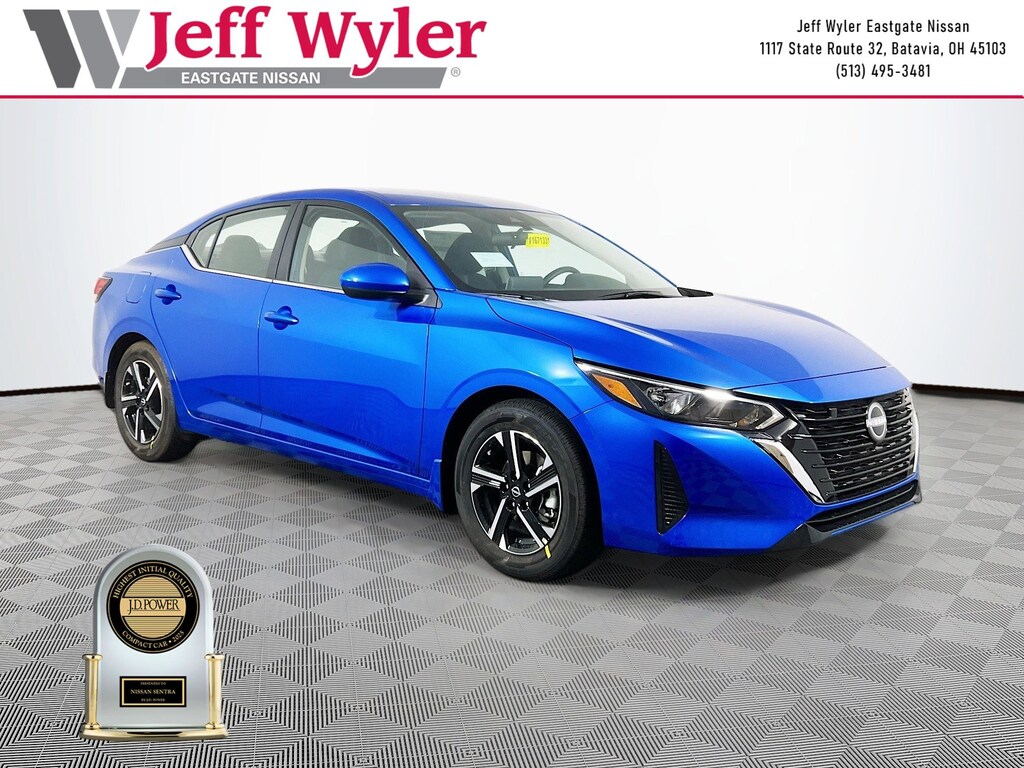 Priced below KBB Fair Purchase Price! Electric Blue Metallic 2025 Nissan Sentra SV 2.0L I4 DOHC FWD CVT with Xtronic 30/40 City/Highway MPG Jeff Wyler Eastgate Auto Mall is excited to offer this fantastic 2025 Nissan Sentra SV in Electric Blue Metallic. Well equipped with: 16" Alloy Wheels, 4-Wheel Disc Brakes, 8 Speakers, ABS brakes, Air Conditioning, Alloy wheels, AM/FM radio: SiriusXM, Auto High-beam Headlights, Blind Spot Warning, Body Colored Splash Guards (4-Piece), Brake assist, Bumpers: body-color, Carpeted Floor Mats with Trunk Mat, Clear Rear Bumper Protector, Delay-off headlights, Door Sill Plates, Driver door bin, Driver vanity mirror, Dual front impact airbags, Dual front side impact airbags, Electronic Stability Control, Four wheel independent suspension, Front anti-roll bar, Front Bucket Seats, Front Center Armrest, Front reading lights, Fully automatic headlights, Illuminated entry, Knee airbag, Low tire pressure warning, NissanConnect featuring Apple CarPlay and Android Auto, Occupant sensing airbag, Outside temperature display, Overhead airbag, Overhead console, Panic alarm, Passenger door bin, Passenger vanity mirror, Power door mirrors, Power steering, Power windows, Radio data system, Radio: AM/FM with RDS/MP3/Aux-in, Rear anti-roll bar, Rear Parking Sensors, Rear side impact airbag, Rear window defroster, Remote keyless entry, Security system, Speed control, Speed-sensing steering, Split folding rear seat, Steering wheel mounted audio controls, Tachometer, Telescoping steering wheel, Tilt steering wheel, Traction control, Trip computer, Upgraded Cloth Seat Trim, and Variably intermittent wipers. 30/40 City/Highway MPG Price includes: $500 - Nissan MY25 Sentra Bonus Cash. Exp. 01/05/2026 $500 - Nissan National Holiday Bonus Cash. Exp. 01/02/2026