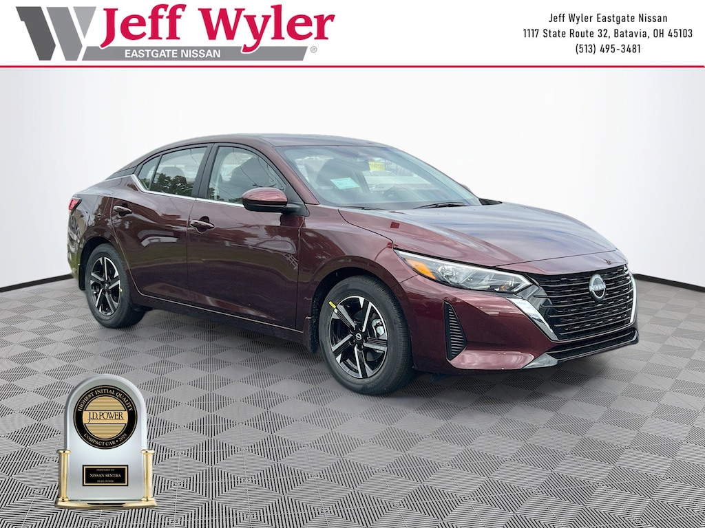 Priced below KBB Fair Purchase Price! Rosewood Metallic 2025 Nissan Sentra SV 2.0L I4 DOHC FWD CVT with Xtronic 30/40 City/Highway MPG Jeff Wyler Eastgate Auto Mall is pleased to offer this handsome 2025 Nissan Sentra SV in Rosewood Metallic. Well equipped with: 16" Alloy Wheels, 4-Wheel Disc Brakes, 8 Speakers, ABS brakes, Air Conditioning, Alloy wheels, AM/FM radio: SiriusXM, Auto High-beam Headlights, Blind Spot Warning, Body Colored Splash Guards (4-Piece), Brake assist, Bumpers: body-color, Carpeted Floor Mats with Trunk Mat, Clear Rear Bumper Protector, Delay-off headlights, Door Sill Plates, Driver door bin, Driver vanity mirror, Dual front impact airbags, Dual front side impact airbags, Electronic Stability Control, Four wheel independent suspension, Front anti-roll bar, Front Bucket Seats, Front Center Armrest, Front reading lights, Fully automatic headlights, Illuminated entry, Knee airbag, Low tire pressure warning, NissanConnect featuring Apple CarPlay and Android Auto, Occupant sensing airbag, Outside temperature display, Overhead airbag, Overhead console, Panic alarm, Passenger door bin, Passenger vanity mirror, Power door mirrors, Power steering, Power windows, Radio data system, Radio: AM/FM with RDS/MP3/Aux-in, Rear anti-roll bar, Rear Parking Sensors, Rear side impact airbag, Rear window defroster, Remote keyless entry, Security system, Speed control, Speed-sensing steering, Split folding rear seat, Steering wheel mounted audio controls, Tachometer, Telescoping steering wheel, Tilt steering wheel, Traction control, Trip computer, Upgraded Cloth Seat Trim, and Variably intermittent wipers. 30/40 City/Highway MPG Price includes: $500 - Nissan MY25 Sentra Bonus Cash. Exp. 01/05/2026 $500 - Nissan National Holiday Bonus Cash. Exp. 01/02/2026