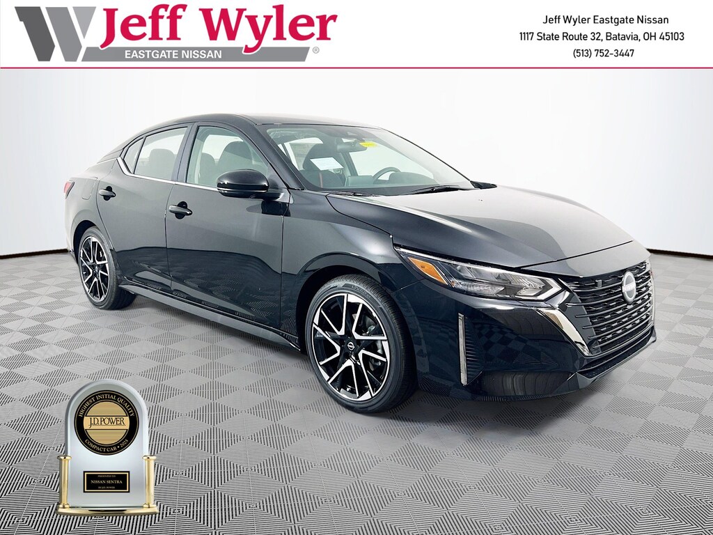 Priced below KBB Fair Purchase Price! Super Black 2025 Nissan Sentra SR 2.0L I4 DOHC FWD CVT with Xtronic 30/38 City/Highway MPG Jeff Wyler Eastgate Auto Mall is honored to offer this superb 2025 Nissan Sentra SR in Super Black. Well equipped with: Trunk Package (Hide-A-Way Trunk Net), 18" Alloy Wheels, 4-Wheel Disc Brakes, 8 Speakers, ABS brakes, Air Conditioning, Alloy wheels, AM/FM radio: SiriusXM, Auto High-beam Headlights, Automatic temperature control, Blind Spot Warning, Brake assist, Bumpers: body-color, Carpeted Floor Mats with Trunk Mat, Clear Rear Bumper Protector, Delay-off headlights, Door Sill Plates, Driver door bin, Driver vanity mirror, Dual front impact airbags, Dual front side impact airbags, Electronic Stability Control, Four wheel independent suspension, Front anti-roll bar, Front Bucket Seats, Front Center Armrest, Front dual zone A/C, Front reading lights, Fully automatic headlights, Heated door mirrors, Heated Front Bucket Seats, Heated front seats, Illuminated entry, Knee airbag, Leather Shift Knob, Low tire pressure warning, NissanConnect featuring Apple CarPlay and Android Auto, Occupant sensing airbag, Outside temperature display, Overhead airbag, Overhead console, Panic alarm, Passenger door bin, Passenger vanity mirror, Power door mirrors, Power steering, Power windows, Radio data system, Radio: AM/FM with RDS/MP3/Aux-in, Rear anti-roll bar, Rear Parking Sensors, Rear seat center armrest, Rear side impact airbag, Rear window defroster, Remote keyless entry, Security system, Speed control, Speed-sensing steering, Split folding rear seat, Spoiler, Sport Cloth Seat Trim, Steering wheel mounted audio controls, Tachometer, Telescoping steering wheel, Tilt steering wheel, Traction control, Trip computer, Turn signal indicator mirrors, and Variably intermittent wipers. 30/38 City/Highway MPG Price includes: $500 - Nissan MY25 Sentra Bonus Cash. Exp. 01/05/2026