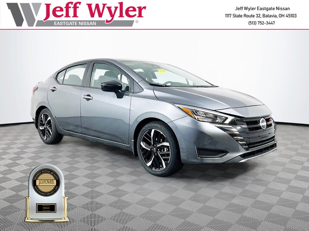 Priced below KBB Fair Purchase Price! Gun Metallic 2025 Nissan Versa 1.6 SR 1.6L I4 DOHC 16V FWD CVT 32/40 City/Highway MPG Jeff Wyler Eastgate Auto Mall is pleased to offer this great 2025 Nissan Versa 1.6 SR in Gun Metallic. Well equipped with: Trunk Package (Shopping Bag Hooks and Trunk Net), 17" Aluminum Alloy Wheels, 6 Speakers, ABS brakes, Air Conditioning, Alloy wheels, AM/FM radio: SiriusXM, Apple CarPlay/Android Auto, Auto High-beam Headlights, Automatic temperature control, Blind Spot Warning, Brake assist, Bumpers: body-color, Carpeted Floor Mats & Trunk Mat (5-Piece Set), Delay-off headlights, Driver door bin, Driver vanity mirror, Dual front impact airbags, Dual front side impact airbags, Electronic Stability Control, Emergency communication system, Front anti-roll bar, Front Bucket Seats, Front Center Armrest, Front reading lights, Front wheel independent suspension, Fully automatic headlights, Heated door mirrors, Heated Front Bucket Seats, Heated front seats, Illuminated entry, Knee airbag, Leather steering wheel, Low tire pressure warning, Occupant sensing airbag, Outside temperature display, Overhead airbag, Panic alarm, Passenger door bin, Passenger vanity mirror, Power door mirrors, Power steering, Power windows, Radio data system, Radio: AM/FM Audio System, Rear Parking Sensors, Rear side impact airbag, Rear window defroster, Remote keyless entry, Speed control, Splash Guards, Split folding rear seat, Spoiler, SR Fabric Seat Trim, Steering wheel mounted audio controls, Tachometer, Telescoping steering wheel, Tilt steering wheel, Traction control, Trip computer, Turn signal indicator mirrors, and Variably intermittent wipers. 32/40 City/Highway MPG Price includes: $750 - Nissan MY25 Versa Bonus Cash (All Markets) - December. Exp. 01/05/2026