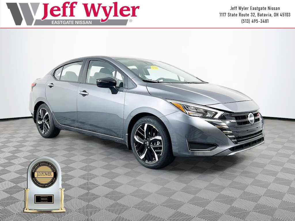 Priced below KBB Fair Purchase Price! Gun Metallic 2025 Nissan Versa 1.6 SR 1.6L I4 DOHC 16V FWD CVT 32/40 City/Highway MPG Jeff Wyler Eastgate Auto Mall is pumped up to offer this attractive 2025 Nissan Versa 1.6 SR in Gun Metallic. Well equipped with: Trunk Package (Shopping Bag Hooks and Trunk Net), 17" Aluminum Alloy Wheels, 6 Speakers, ABS brakes, Air Conditioning, Alloy wheels, AM/FM radio: SiriusXM, Apple CarPlay/Android Auto, Auto High-beam Headlights, Automatic temperature control, Blind Spot Warning, Brake assist, Bumpers: body-color, Carpeted Floor Mats & Trunk Mat (5-Piece Set), Delay-off headlights, Driver door bin, Driver vanity mirror, Dual front impact airbags, Dual front side impact airbags, Electronic Stability Control, Emergency communication system, Front anti-roll bar, Front Bucket Seats, Front Center Armrest, Front reading lights, Front wheel independent suspension, Fully automatic headlights, Heated door mirrors, Heated Front Bucket Seats, Heated front seats, Illuminated entry, Knee airbag, Leather steering wheel, Low tire pressure warning, Occupant sensing airbag, Outside temperature display, Overhead airbag, Panic alarm, Passenger door bin, Passenger vanity mirror, Power door mirrors, Power steering, Power windows, Radio data system, Radio: AM/FM Audio System, Rear Parking Sensors, Rear side impact airbag, Rear window defroster, Remote keyless entry, Speed control, Splash Guards, Split folding rear seat, Spoiler, SR Fabric Seat Trim, Steering wheel mounted audio controls, Tachometer, Telescoping steering wheel, Tilt steering wheel, Traction control, Trip computer, Turn signal indicator mirrors, and Variably intermittent wipers. 32/40 City/Highway MPG Price includes: $750 - Nissan MY25 Versa Bonus Cash (All Markets) - December. Exp. 01/05/2026