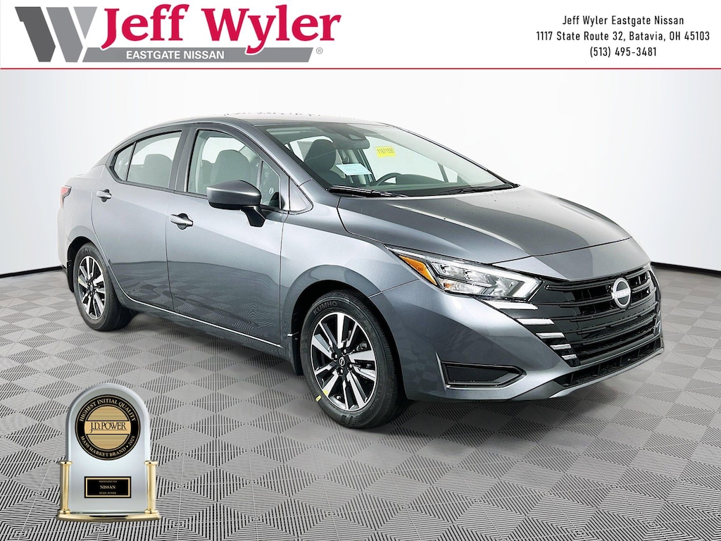 Gun Metallic 2025 Nissan Versa 1.6 SV 1.6L I4 DOHC 16V FWD CVT 32/40 City/Highway MPG Jeff Wyler Eastgate Auto Mall is pleased to offer this handsome 2025 Nissan Versa 1.6 SV in Gun Metallic. Well equipped with: Trunk Package (Shopping Bag Hooks and Trunk Net), 16" Aluminum Alloy Wheels, 4 Speakers, ABS brakes, Air Conditioning, Alloy wheels, Apple CarPlay/Android Auto, Auto High-beam Headlights, Blind Spot Warning, Brake assist, Bumpers: body-color, Carpeted Floor Mats & Trunk Mat (5-Piece Set), Delay-off headlights, Driver door bin, Driver vanity mirror, Dual front impact airbags, Dual front side impact airbags, Electronic Stability Control, Front anti-roll bar, Front Bucket Seats, Front Center Armrest, Front reading lights, Front wheel independent suspension, Fully automatic headlights, Heated door mirrors, Illuminated entry, Knee airbag, Low tire pressure warning, Occupant sensing airbag, Outside temperature display, Overhead airbag, Panic alarm, Passenger door bin, Passenger vanity mirror, Power door mirrors, Power steering, Power windows, Radio data system, Radio: AM/FM Audio System, Rear Parking Sensors, Rear side impact airbag, Rear window defroster, Remote keyless entry, Speed control, Splash Guards, Split folding rear seat, Steering wheel mounted audio controls, Tachometer, Telescoping steering wheel, Tilt steering wheel, Traction control, Trip computer, Upgraded Cloth Seat Trim, and Variably intermittent wipers. 32/40 City/Highway MPG Price includes: $750 - Nissan MY25 Versa Bonus Cash (All Markets) - December. Exp. 01/05/2026
