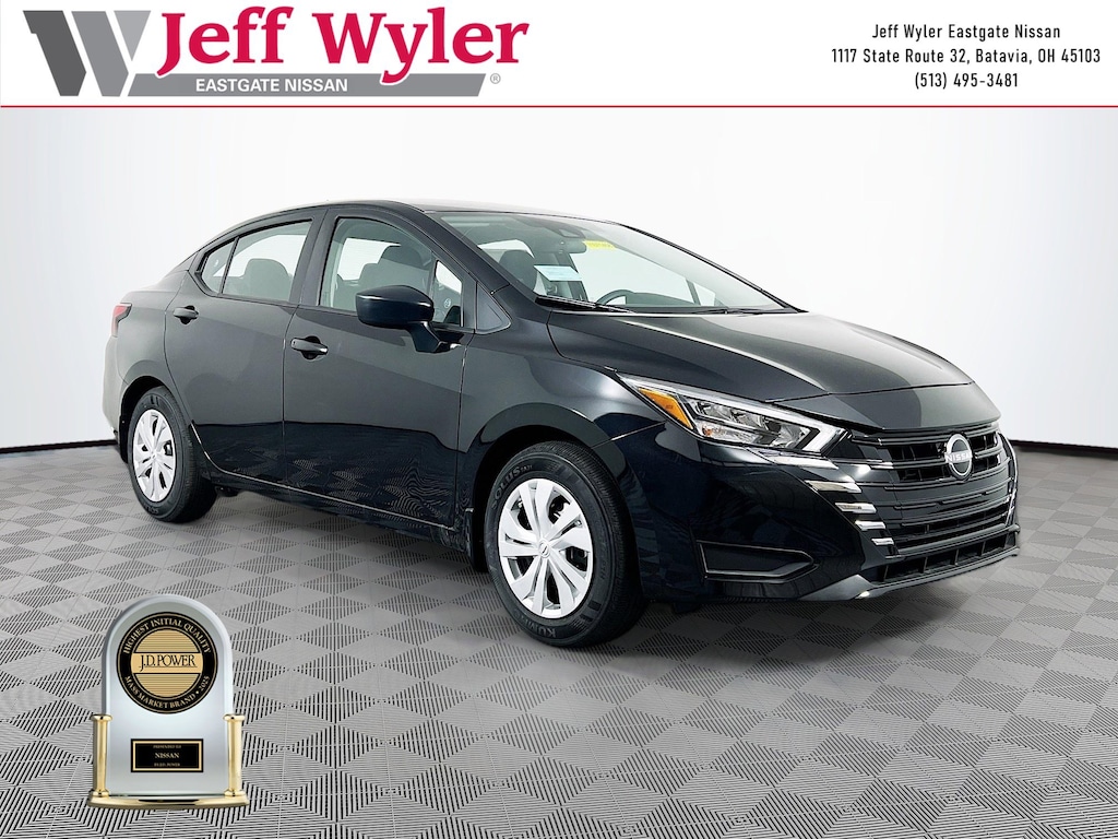 Super Black Metallic 2025 Nissan Versa 1.6 S 1.6L I4 DOHC 16V FWD CVT 32/40 City/Highway MPG Jeff Wyler Eastgate Auto Mall is pumped up to offer this attractive-looking 2025 Nissan Versa 1.6 S in Super Black Metallic. Well equipped with: Trunk Package (Shopping Bag Hooks and Trunk Net), 15" Steel Wheels w/Full Wheel Covers, 4 Speakers, ABS brakes, Air Conditioning, AM/FM radio, Auto High-beam Headlights, Brake assist, Bumpers: body-color, Carpeted Floor Mats, Cloth Seat Trim, Delay-off headlights, Driver door bin, Driver vanity mirror, Dual front impact airbags, Dual front side impact airbags, Electronic Stability Control, Front anti-roll bar, Front Bucket Seats, Front reading lights, Front wheel independent suspension, Fully automatic headlights, Illuminated entry, Knee airbag, Low tire pressure warning, Occupant sensing airbag, Outside temperature display, Overhead airbag, Panic alarm, Passenger door bin, Passenger vanity mirror, Power door mirrors, Power steering, Power windows, Radio data system, Radio: AM/FM Audio System, Rear Parking Sensors, Rear side impact airbag, Rear window defroster, Speed control, Splash Guards, Steering wheel mounted audio controls, Tachometer, Telescoping steering wheel, Tilt steering wheel, Traction control, Trip computer, and Variably intermittent wipers. 32/40 City/Highway MPG Price includes: $750 - Nissan MY25 Versa Bonus Cash (All Markets) - December. Exp. 01/05/2026