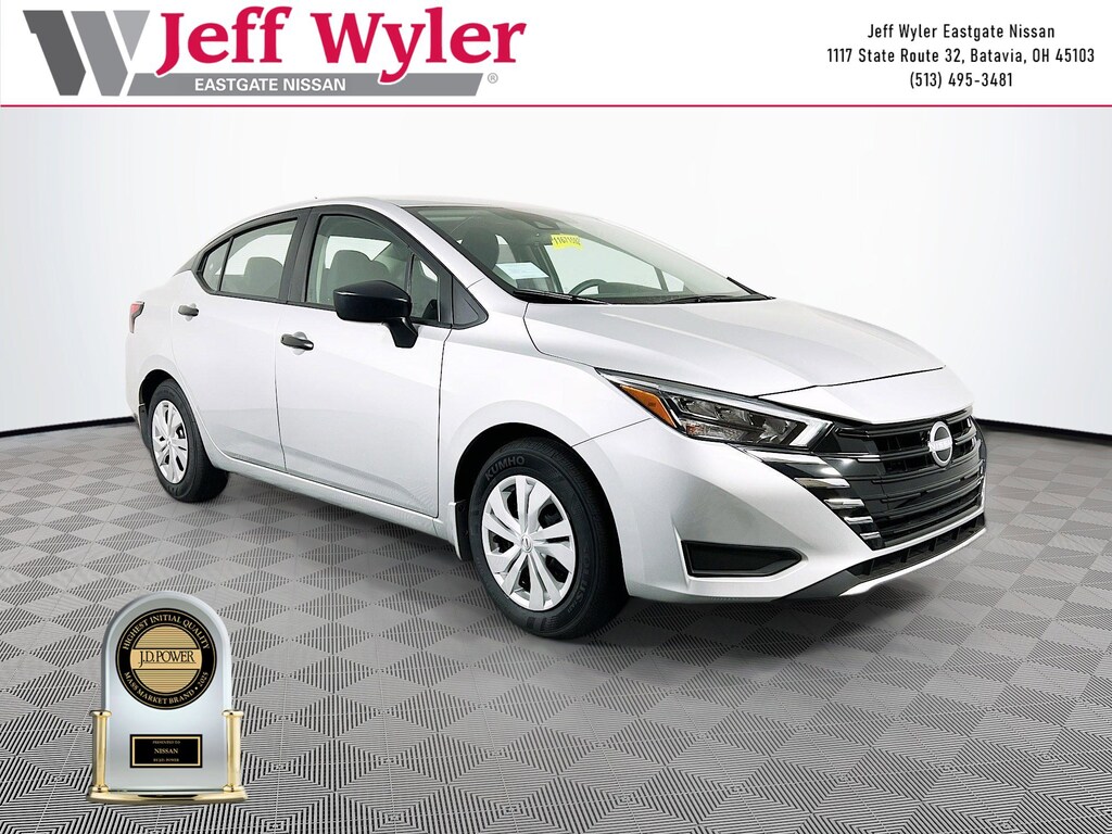 Priced below KBB Fair Purchase Price! Brilliant Silver Metallic 2025 Nissan Versa 1.6 S 1.6L I4 DOHC 16V FWD CVT 32/40 City/Highway MPG Jeff Wyler Eastgate Auto Mall is very proud to offer this outstanding-looking 2025 Nissan Versa 1.6 S in Brilliant Silver Metallic. Well equipped with: Trunk Package (Shopping Bag Hooks and Trunk Net), 15" Steel Wheels w/Full Wheel Covers, 4 Speakers, ABS brakes, Air Conditioning, AM/FM radio, Auto High-beam Headlights, Brake assist, Bumpers: body-color, Carpeted Floor Mats, Cloth Seat Trim, Delay-off headlights, Driver door bin, Driver vanity mirror, Dual front impact airbags, Dual front side impact airbags, Electronic Stability Control, Front anti-roll bar, Front Bucket Seats, Front reading lights, Front wheel independent suspension, Fully automatic headlights, Illuminated entry, Knee airbag, Low tire pressure warning, Occupant sensing airbag, Outside temperature display, Overhead airbag, Panic alarm, Passenger door bin, Passenger vanity mirror, Power door mirrors, Power steering, Power windows, Radio data system, Radio: AM/FM Audio System, Rear Parking Sensors, Rear side impact airbag, Rear window defroster, Speed control, Splash Guards, Steering wheel mounted audio controls, Tachometer, Telescoping steering wheel, Tilt steering wheel, Traction control, Trip computer, and Variably intermittent wipers. 32/40 City/Highway MPG Price includes: $750 - Nissan MY25 Bonus Cash. Exp. 03/02/2026