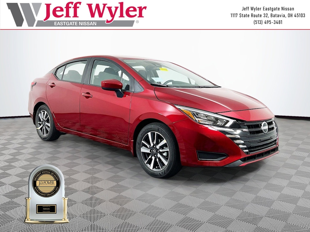 Scarlet Ember Tintcoat 2025 Nissan Versa 1.6 SV 1.6L I4 DOHC 16V FWD CVT 32/40 City/Highway MPG Jeff Wyler Eastgate Auto Mall is pumped up to offer this outstanding-looking 2025 Nissan Versa 1.6 SV in Scarlet Ember Tintcoat. Well equipped with: Trunk Package (Shopping Bag Hooks and Trunk Net), 16" Aluminum Alloy Wheels, 4 Speakers, ABS brakes, Air Conditioning, Alloy wheels, Apple CarPlay/Android Auto, Auto High-beam Headlights, Blind Spot Warning, Brake assist, Bumpers: body-color, Carpeted Floor Mats & Trunk Mat (5-Piece Set), Delay-off headlights, Driver door bin, Driver vanity mirror, Dual front impact airbags, Dual front side impact airbags, Electronic Stability Control, Front anti-roll bar, Front Bucket Seats, Front Center Armrest, Front reading lights, Front wheel independent suspension, Fully automatic headlights, Heated door mirrors, Illuminated entry, Knee airbag, Low tire pressure warning, Occupant sensing airbag, Outside temperature display, Overhead airbag, Panic alarm, Passenger door bin, Passenger vanity mirror, Power door mirrors, Power steering, Power windows, Premium Paint, Radio data system, Radio: AM/FM Audio System, Rear Parking Sensors, Rear side impact airbag, Rear window defroster, Remote keyless entry, Speed control, Splash Guards, Split folding rear seat, Steering wheel mounted audio controls, Tachometer, Telescoping steering wheel, Tilt steering wheel, Traction control, Trip computer, Upgraded Cloth Seat Trim, and Variably intermittent wipers. 32/40 City/Highway MPG Price includes: $750 - Nissan MY25 Versa Bonus Cash (All Markets) - December. Exp. 01/05/2026