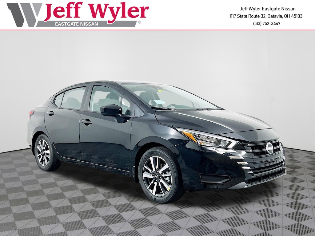 Priced below KBB Fair Purchase Price! Super Black Metallic 2025 Nissan Versa 1.6 SV 1.6L I4 DOHC 16V FWD CVT 32/40 City/Highway MPG Jeff Wyler Eastgate Auto Mall is very proud to offer this outstanding 2025 Nissan Versa 1.6 SV in Super Black Metallic. Well equipped with: Trunk Package (Shopping Bag Hooks and Trunk Net), 16" Aluminum Alloy Wheels, 4 Speakers, ABS brakes, Air Conditioning, Alloy wheels, Apple CarPlay/Android Auto, Auto High-beam Headlights, Blind Spot Warning, Brake assist, Bumpers: body-color, Carpeted Floor Mats & Trunk Mat (5-Piece Set), Delay-off headlights, Driver door bin, Driver vanity mirror, Dual front impact airbags, Dual front side impact airbags, Electronic Stability Control, Front anti-roll bar, Front Bucket Seats, Front Center Armrest, Front reading lights, Front wheel independent suspension, Fully automatic headlights, Heated door mirrors, Illuminated entry, Knee airbag, Low tire pressure warning, Occupant sensing airbag, Outside temperature display, Overhead airbag, Panic alarm, Passenger door bin, Passenger vanity mirror, Power door mirrors, Power steering, Power windows, Radio data system, Radio: AM/FM Audio System, Rear Parking Sensors, Rear side impact airbag, Rear window defroster, Remote keyless entry, Speed control, Splash Guards, Split folding rear seat, Steering wheel mounted audio controls, Tachometer, Telescoping steering wheel, Tilt steering wheel, Traction control, Trip computer, Upgraded Cloth Seat Trim, and Variably intermittent wipers. 32/40 City/Highway MPG Price includes: $750 - Nissan MY25 Versa Bonus Cash (All Markets) - November. Exp. 12/01/2025