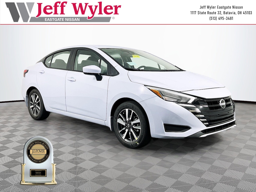 Gray Sky Pearl 2025 Nissan Versa 1.6 SV 1.6L I4 DOHC 16V FWD CVT 32/40 City/Highway MPG Jeff Wyler Eastgate Auto Mall is pleased to offer this fantastic-looking 2025 Nissan Versa 1.6 SV in Gray Sky Pearl. Well equipped with: Trunk Package (Shopping Bag Hooks and Trunk Net), 16" Aluminum Alloy Wheels, 4 Speakers, ABS brakes, Air Conditioning, Alloy wheels, Apple CarPlay/Android Auto, Auto High-beam Headlights, Blind Spot Warning, Brake assist, Bumpers: body-color, Carpeted Floor Mats & Trunk Mat (5-Piece Set), Delay-off headlights, Driver door bin, Driver vanity mirror, Dual front impact airbags, Dual front side impact airbags, Electronic Stability Control, Front anti-roll bar, Front Bucket Seats, Front Center Armrest, Front reading lights, Front wheel independent suspension, Fully automatic headlights, Heated door mirrors, Illuminated entry, Knee airbag, Low tire pressure warning, Occupant sensing airbag, Outside temperature display, Overhead airbag, Panic alarm, Passenger door bin, Passenger vanity mirror, Power door mirrors, Power steering, Power windows, Premium Paint, Radio data system, Radio: AM/FM Audio System, Rear Parking Sensors, Rear side impact airbag, Rear window defroster, Remote keyless entry, Speed control, Splash Guards, Split folding rear seat, Steering wheel mounted audio controls, Tachometer, Telescoping steering wheel, Tilt steering wheel, Traction control, Trip computer, Upgraded Cloth Seat Trim, and Variably intermittent wipers. 32/40 City/Highway MPG Price includes: $750 - Nissan MY25 Versa Bonus Cash (All Markets) - December. Exp. 01/05/2026