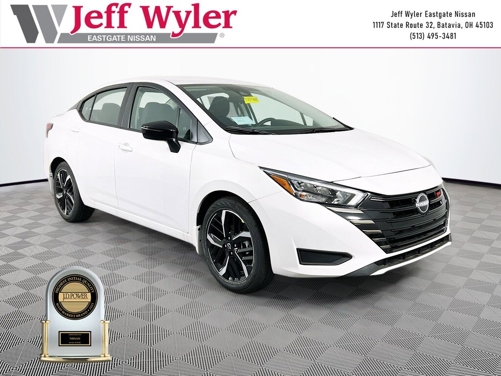 Priced below KBB Fair Purchase Price! Aspen White Tricoat 2025 Nissan Versa 1.6 SR 1.6L I4 DOHC 16V FWD CVT 32/40 City/Highway MPG Jeff Wyler Eastgate Auto Mall is very proud to offer this wonderful-looking 2025 Nissan Versa 1.6 SR in Aspen White Tricoat. Well equipped with: Trunk Package (Shopping Bag Hooks and Trunk Net), 17" Aluminum Alloy Wheels, 6 Speakers, ABS brakes, Air Conditioning, Alloy wheels, AM/FM radio: SiriusXM, Apple CarPlay/Android Auto, Auto High-beam Headlights, Automatic temperature control, Blind Spot Warning, Brake assist, Bumpers: body-color, Carpeted Floor Mats & Trunk Mat (5-Piece Set), Delay-off headlights, Driver door bin, Driver vanity mirror, Dual front impact airbags, Dual front side impact airbags, Electronic Stability Control, Emergency communication system, Front anti-roll bar, Front Bucket Seats, Front Center Armrest, Front reading lights, Front wheel independent suspension, Fully automatic headlights, Heated door mirrors, Heated Front Bucket Seats, Heated front seats, Illuminated entry, Knee airbag, Leather steering wheel, Low tire pressure warning, Occupant sensing airbag, Outside temperature display, Overhead airbag, Panic alarm, Passenger door bin, Passenger vanity mirror, Power door mirrors, Power steering, Power windows, Premium Paint, Radio data system, Radio: AM/FM Audio System, Rear Parking Sensors, Rear side impact airbag, Rear window defroster, Remote keyless entry, Speed control, Splash Guards, Split folding rear seat, Spoiler, SR Fabric Seat Trim, Steering wheel mounted audio controls, Tachometer, Telescoping steering wheel, Tilt steering wheel, Traction control, Trip computer, Turn signal indicator mirrors, and Variably intermittent wipers. 32/40 City/Highway MPG Price includes: $750 - Nissan MY25 Versa Bonus Cash. Exp. 02/02/2026