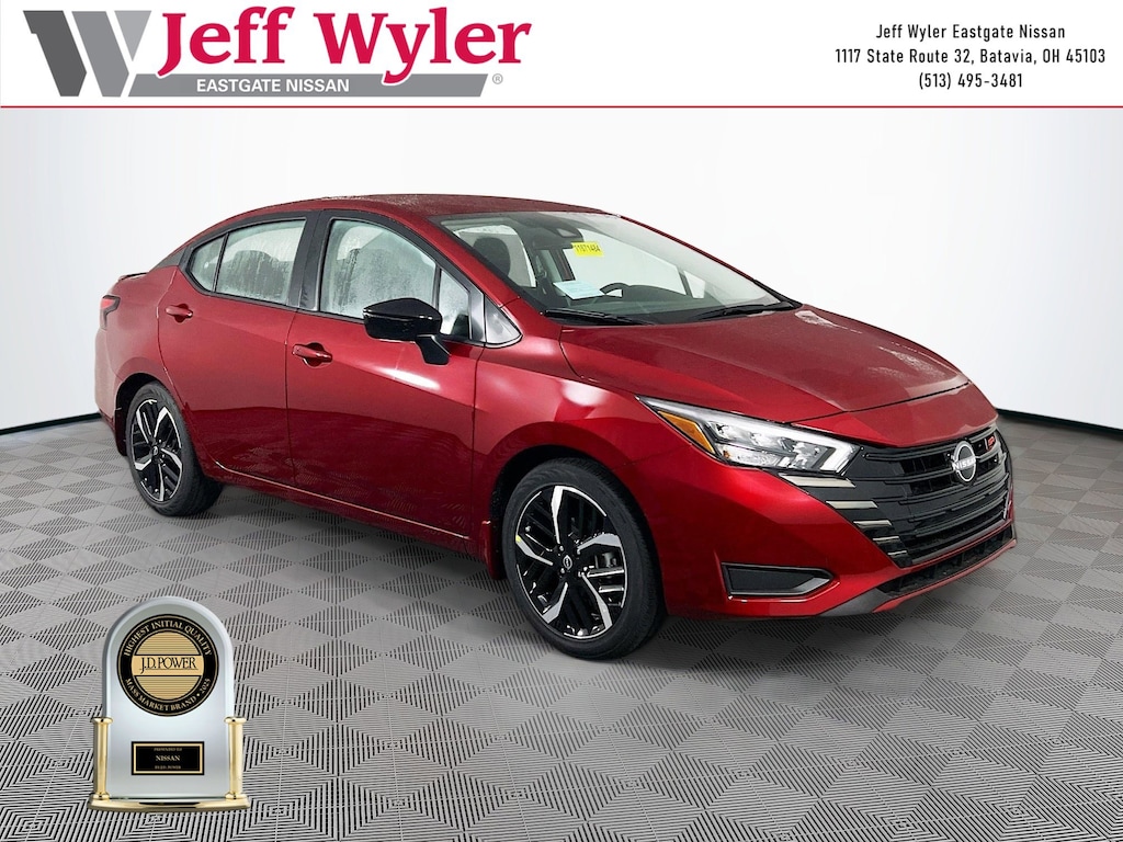 Scarlet Ember Tintcoat 2025 Nissan Versa 1.6 SR 1.6L I4 DOHC 16V FWD CVT 32/40 City/Highway MPG Jeff Wyler Eastgate Auto Mall is pumped up to offer this great 2025 Nissan Versa 1.6 SR in Scarlet Ember Tintcoat. Well equipped with: Trunk Package (Shopping Bag Hooks and Trunk Net), 17" Aluminum Alloy Wheels, 6 Speakers, ABS brakes, Air Conditioning, Alloy wheels, AM/FM radio: SiriusXM, Apple CarPlay/Android Auto, Auto High-beam Headlights, Automatic temperature control, Blind Spot Warning, Brake assist, Bumpers: body-color, Carpeted Floor Mats & Trunk Mat (5-Piece Set), Delay-off headlights, Driver door bin, Driver vanity mirror, Dual front impact airbags, Dual front side impact airbags, Electronic Stability Control, Emergency communication system, Front anti-roll bar, Front Bucket Seats, Front Center Armrest, Front reading lights, Front wheel independent suspension, Fully automatic headlights, Heated door mirrors, Heated Front Bucket Seats, Heated front seats, Illuminated entry, Knee airbag, Leather steering wheel, Low tire pressure warning, Occupant sensing airbag, Outside temperature display, Overhead airbag, Panic alarm, Passenger door bin, Passenger vanity mirror, Power door mirrors, Power steering, Power windows, Premium Paint, Radio data system, Radio: AM/FM Audio System, Rear Parking Sensors, Rear side impact airbag, Rear window defroster, Remote keyless entry, Speed control, Splash Guards, Split folding rear seat, Spoiler, SR Fabric Seat Trim, Steering wheel mounted audio controls, Tachometer, Telescoping steering wheel, Tilt steering wheel, Traction control, Trip computer, Turn signal indicator mirrors, and Variably intermittent wipers. 32/40 City/Highway MPG Price includes: $750 - Nissan MY25 Versa Bonus Cash (All Markets) - December. Exp. 01/05/2026