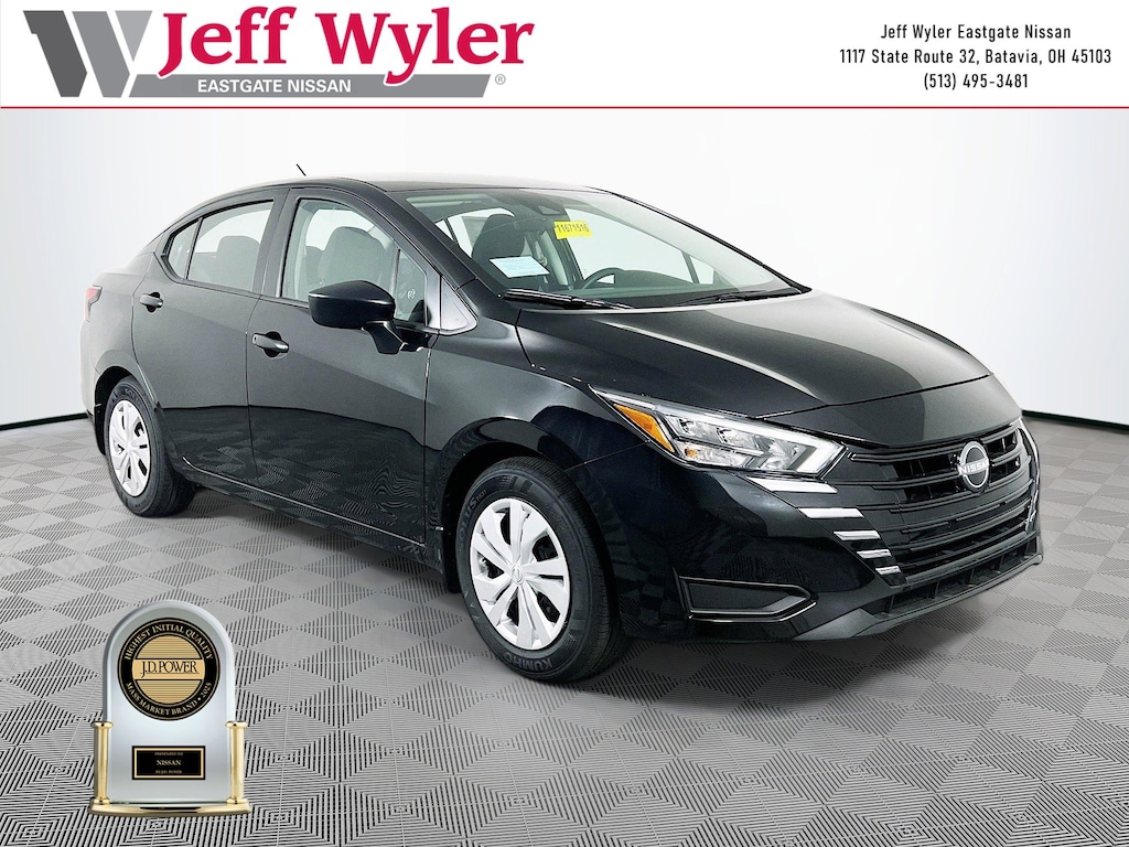 Super Black Metallic 2025 Nissan Versa 1.6 S 1.6L I4 DOHC 16V FWD CVT 32/40 City/Highway MPG Jeff Wyler Eastgate Auto Mall is pleased to offer this terrific-looking 2025 Nissan Versa 1.6 S in Super Black Metallic. Well equipped with: Trunk Package (Shopping Bag Hooks and Trunk Net), 15" Steel Wheels w/Full Wheel Covers, 4 Speakers, ABS brakes, Air Conditioning, AM/FM radio, Armrest, Auto High-beam Headlights, Brake assist, Bumpers: body-color, Carpeted Floor Mats, Cloth Seat Trim, Delay-off headlights, Driver door bin, Driver vanity mirror, Dual front impact airbags, Dual front side impact airbags, Electronic Stability Control, Front anti-roll bar, Front Bucket Seats, Front reading lights, Front wheel independent suspension, Fully automatic headlights, Illuminated entry, Knee airbag, Low tire pressure warning, Occupant sensing airbag, Outside temperature display, Overhead airbag, Panic alarm, Passenger door bin, Passenger vanity mirror, Power door mirrors, Power steering, Power windows, Radio data system, Radio: AM/FM Audio System, Rear Parking Sensors, Rear side impact airbag, Rear window defroster, Speed control, Splash Guards, Steering wheel mounted audio controls, Tachometer, Telescoping steering wheel, Tilt steering wheel, Traction control, Trip computer, and Variably intermittent wipers. 32/40 City/Highway MPG Price includes: $750 - Nissan MY25 Versa Bonus Cash (All Markets) - December. Exp. 01/05/2026