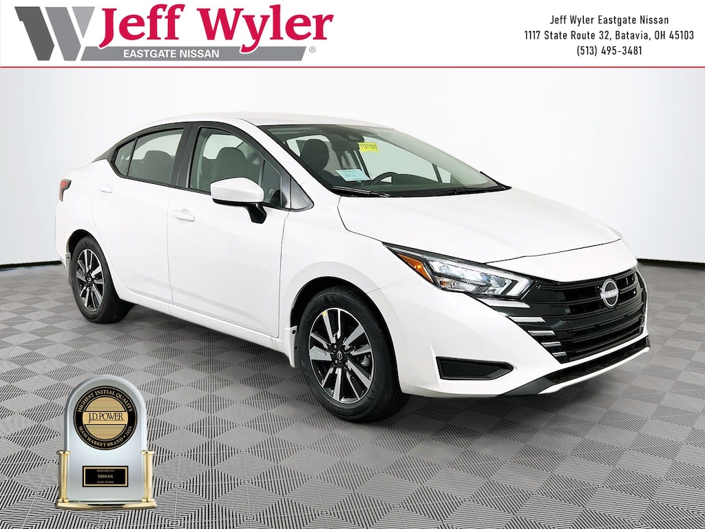 Priced below KBB Fair Purchase Price! Aspen White Tricoat 2025 Nissan Versa 1.6 SV 1.6L I4 DOHC 16V FWD CVT 32/40 City/Highway MPG Jeff Wyler Eastgate Auto Mall is pleased to offer this fantastic 2025 Nissan Versa 1.6 SV in Aspen White Tricoat. Well equipped with: Trunk Package (Shopping Bag Hooks and Trunk Net), 16" Aluminum Alloy Wheels, 4 Speakers, ABS brakes, Air Conditioning, Alloy wheels, Apple CarPlay/Android Auto, Auto High-beam Headlights, Blind Spot Warning, Brake assist, Bumpers: body-color, Carpeted Floor Mats & Trunk Mat (5-Piece Set), Delay-off headlights, Driver door bin, Driver vanity mirror, Dual front impact airbags, Dual front side impact airbags, Electronic Stability Control, Front anti-roll bar, Front Bucket Seats, Front Center Armrest, Front reading lights, Front wheel independent suspension, Fully automatic headlights, Heated door mirrors, Illuminated entry, Knee airbag, Low tire pressure warning, Occupant sensing airbag, Outside temperature display, Overhead airbag, Panic alarm, Passenger door bin, Passenger vanity mirror, Power door mirrors, Power steering, Power windows, Premium Paint, Radio data system, Radio: AM/FM Audio System, Rear Parking Sensors, Rear side impact airbag, Rear window defroster, Remote keyless entry, Speed control, Splash Guards, Split folding rear seat, Steering wheel mounted audio controls, Tachometer, Telescoping steering wheel, Tilt steering wheel, Traction control, Trip computer, Upgraded Cloth Seat Trim, and Variably intermittent wipers. 32/40 City/Highway MPG Price includes: $750 - Nissan MY25 Versa Bonus Cash. Exp. 02/02/2026