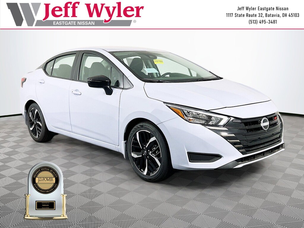 Gray Sky Pearl 2025 Nissan Versa 1.6 SR 1.6L I4 DOHC 16V FWD CVT 32/40 City/Highway MPG Jeff Wyler Eastgate Auto Mall is pumped up to offer this gorgeous-looking 2025 Nissan Versa 1.6 SR in Gray Sky Pearl. Well equipped with: Trunk Package (Shopping Bag Hooks and Trunk Net), 17" Aluminum Alloy Wheels, 6 Speakers, ABS brakes, Air Conditioning, Alloy wheels, AM/FM radio: SiriusXM, Apple CarPlay/Android Auto, Auto High-beam Headlights, Automatic temperature control, Blind Spot Warning, Brake assist, Bumpers: body-color, Carpeted Floor Mats & Trunk Mat (5-Piece Set), Delay-off headlights, Driver door bin, Driver vanity mirror, Dual front impact airbags, Dual front side impact airbags, Electronic Stability Control, Emergency communication system, Front anti-roll bar, Front Bucket Seats, Front Center Armrest, Front reading lights, Front wheel independent suspension, Fully automatic headlights, Heated door mirrors, Heated Front Bucket Seats, Heated front seats, Illuminated entry, Knee airbag, Leather steering wheel, Low tire pressure warning, Occupant sensing airbag, Outside temperature display, Overhead airbag, Panic alarm, Passenger door bin, Passenger vanity mirror, Power door mirrors, Power steering, Power windows, Premium Paint, Radio data system, Radio: AM/FM Audio System, Rear Parking Sensors, Rear side impact airbag, Rear window defroster, Remote keyless entry, Speed control, Splash Guards, Split folding rear seat, Spoiler, SR Fabric Seat Trim, Steering wheel mounted audio controls, Tachometer, Telescoping steering wheel, Tilt steering wheel, Traction control, Trip computer, Turn signal indicator mirrors, USB Charging Cable Set, and Variably intermittent wipers. 32/40 City/Highway MPG Price includes: $750 - Nissan MY25 Bonus Cash. Exp. 03/31/2026